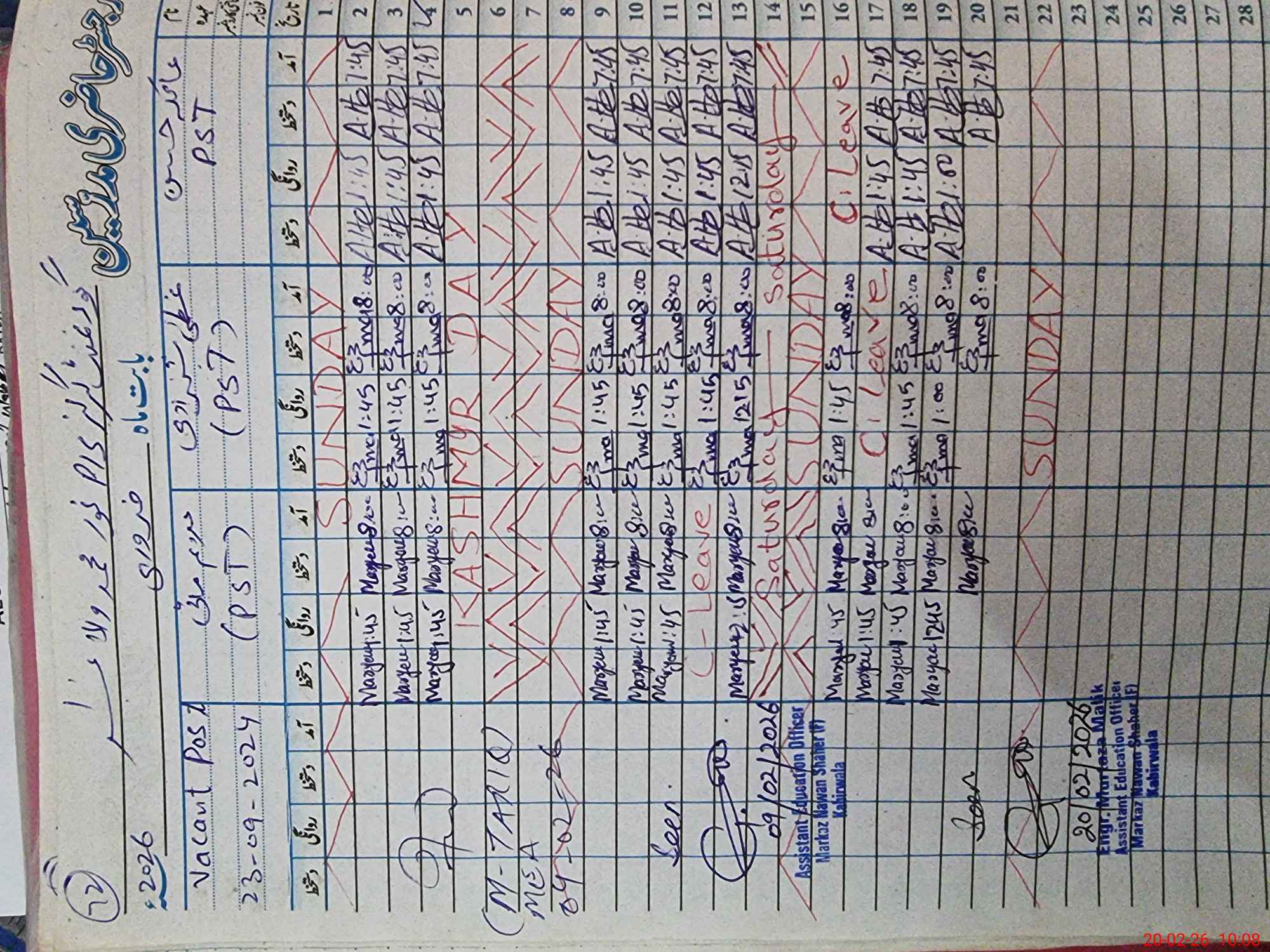 | CNIC | Full Name | Designation | R/C | Absence During Last Calender Month |