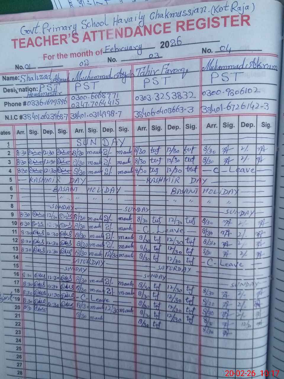 | Name: TA**** FA**** Designation: (School Headmaster's/Headmistress's) PST Phone/Cell Number: 03**** |