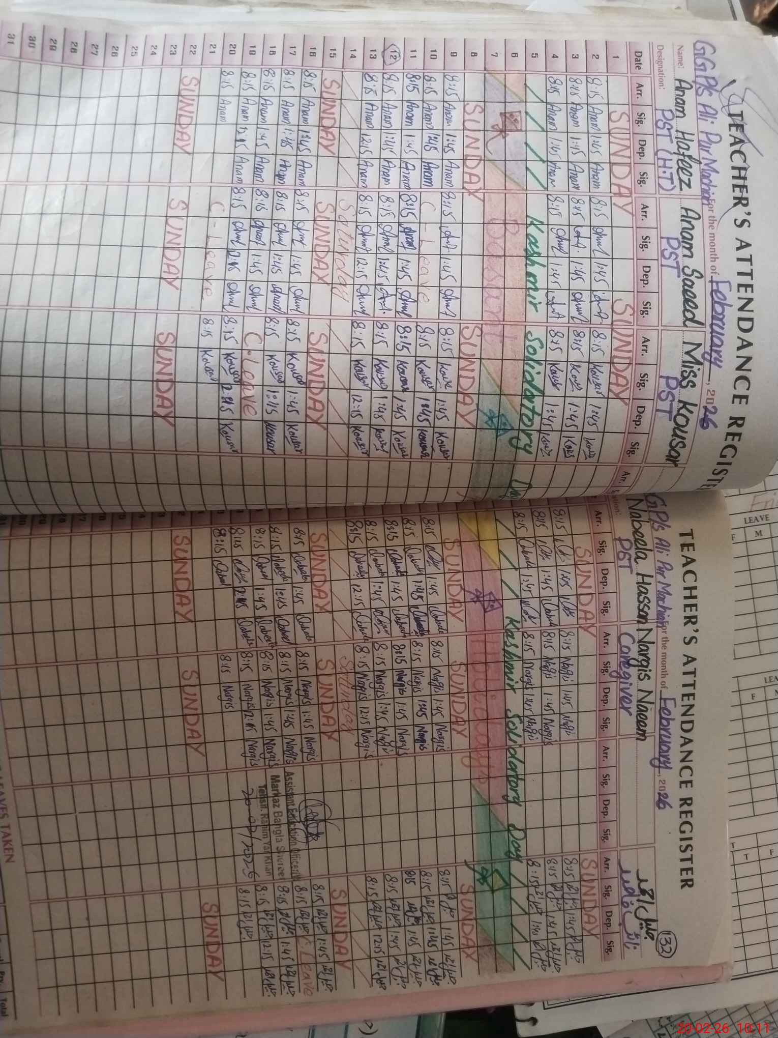 | Leave | Duty | Absent | Maternity | Medical | Ex- Pak |