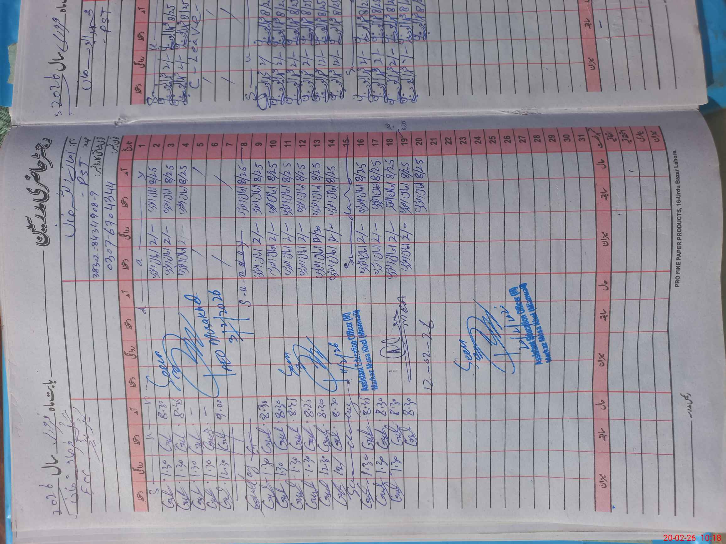 | Name: AH**** KH**** Designation: (School Headmaster's/Headmistress's) PST Phone/Cell Number: 03**** |