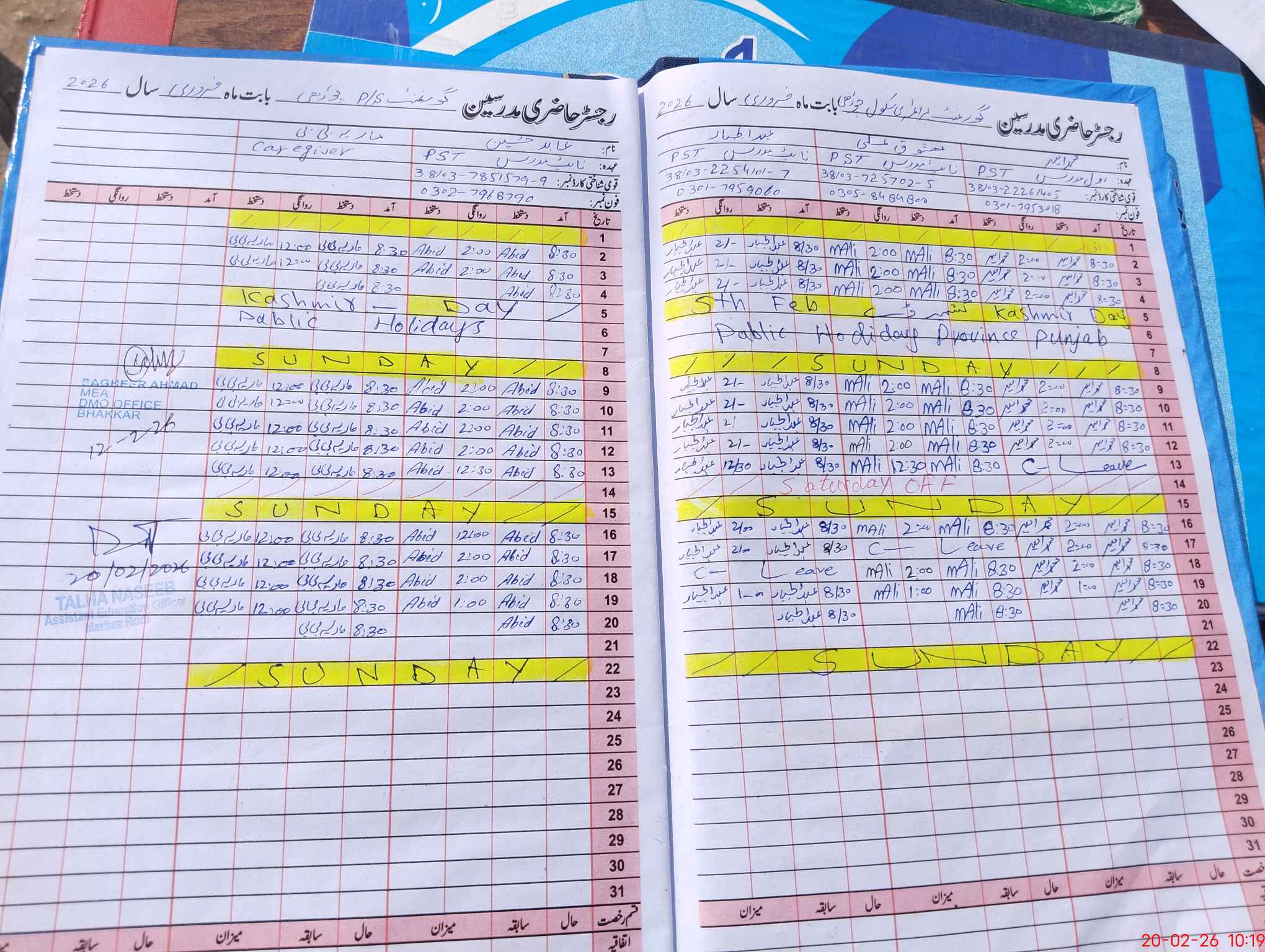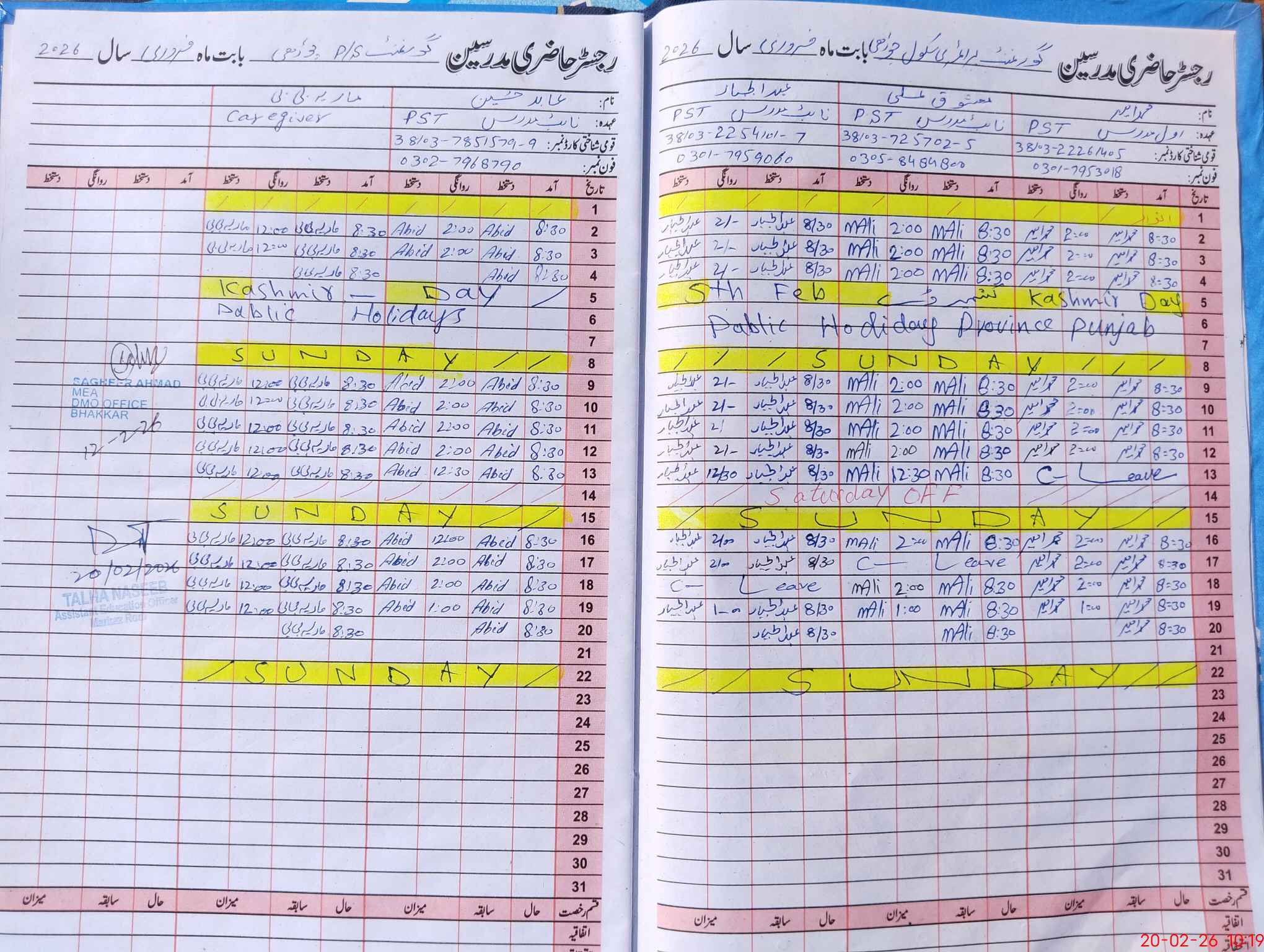 | Name: Ma**** Al**** Designation: (School Headmaster's/Headmistress's) PTC/JV Phone/Cell Number: 03**** |