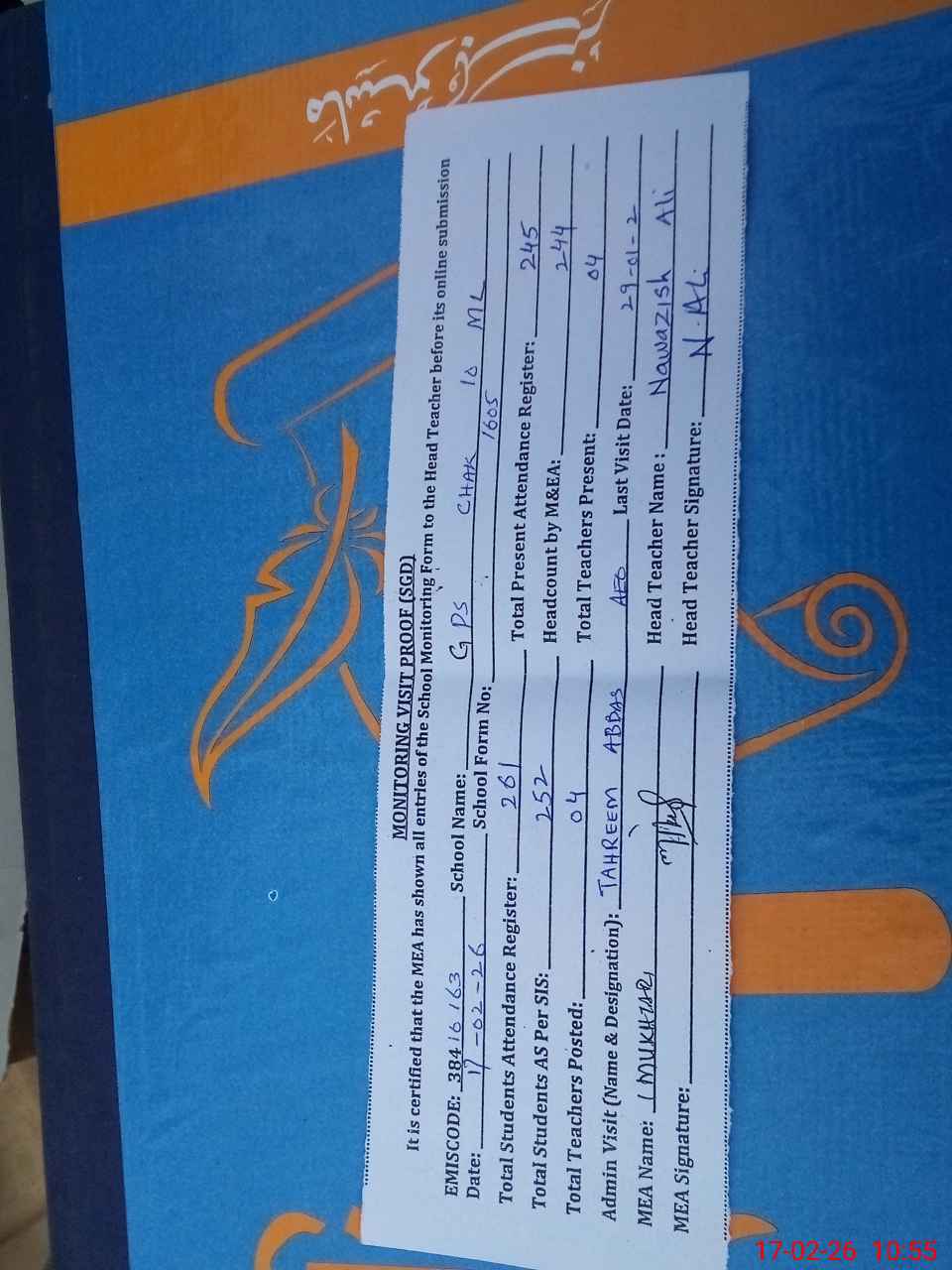 | EMIS Code: 38410163 | Name of School: GPS CHAK NO.10 ML | |||