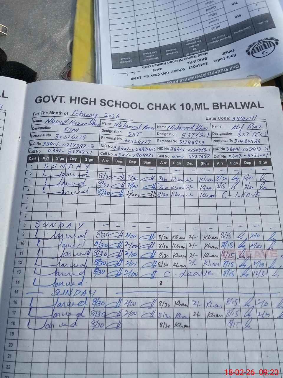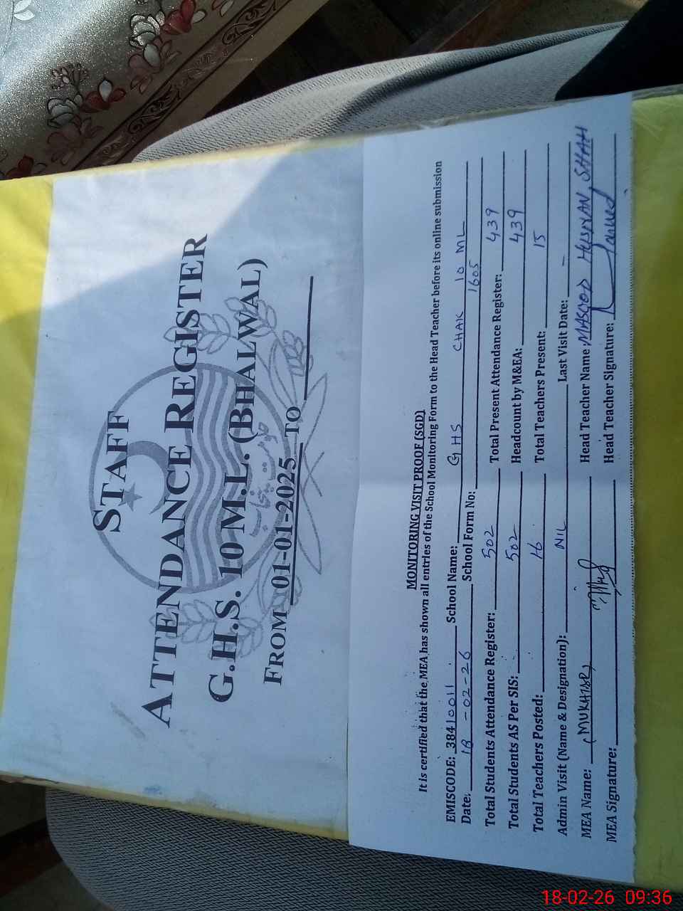 | EMIS Code: 38410011 | Name of School: GHS CHAK NO.10 ML | |||