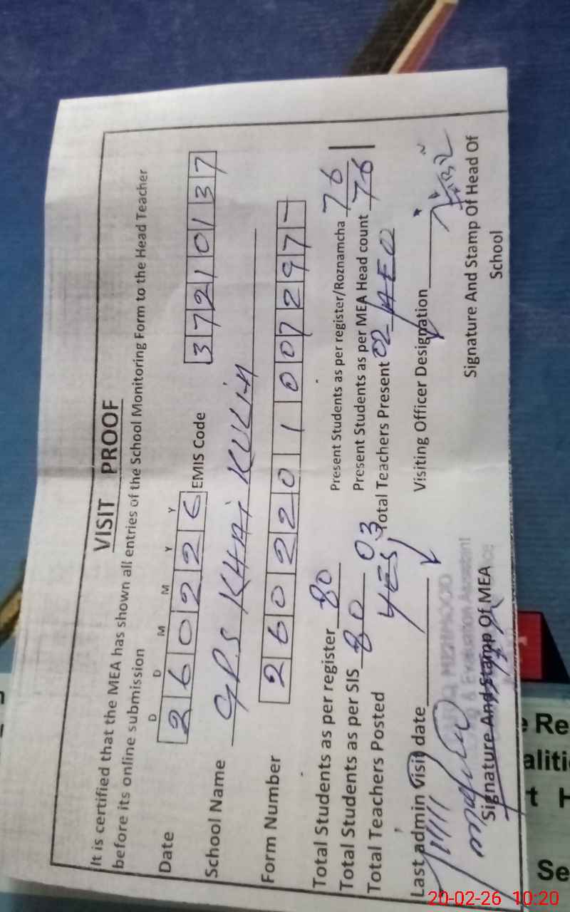 | EMIS Code: 37210137 | Name of School: GPS KHAI KULIA | |||