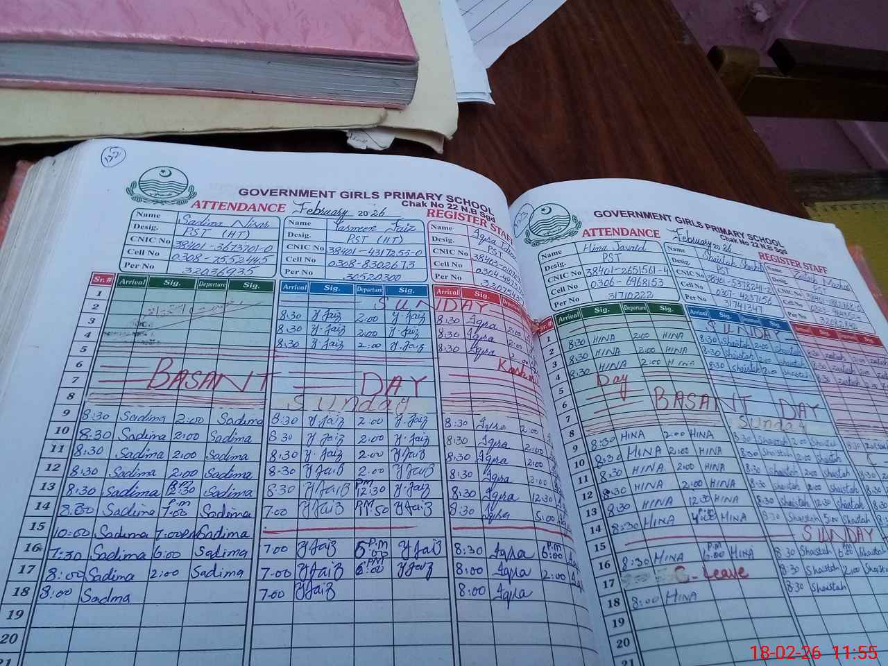 | CNIC | Full Name | Designation | R/C | Absence During Last Calender Month |