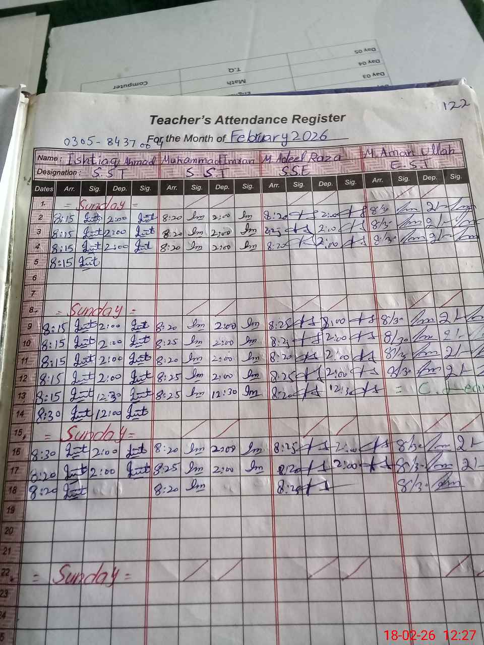 | Name: Is**** Ah**** Designation: (School Headmaster's/Headmistress's) Incharge HM Phone/Cell Number: 03**** |