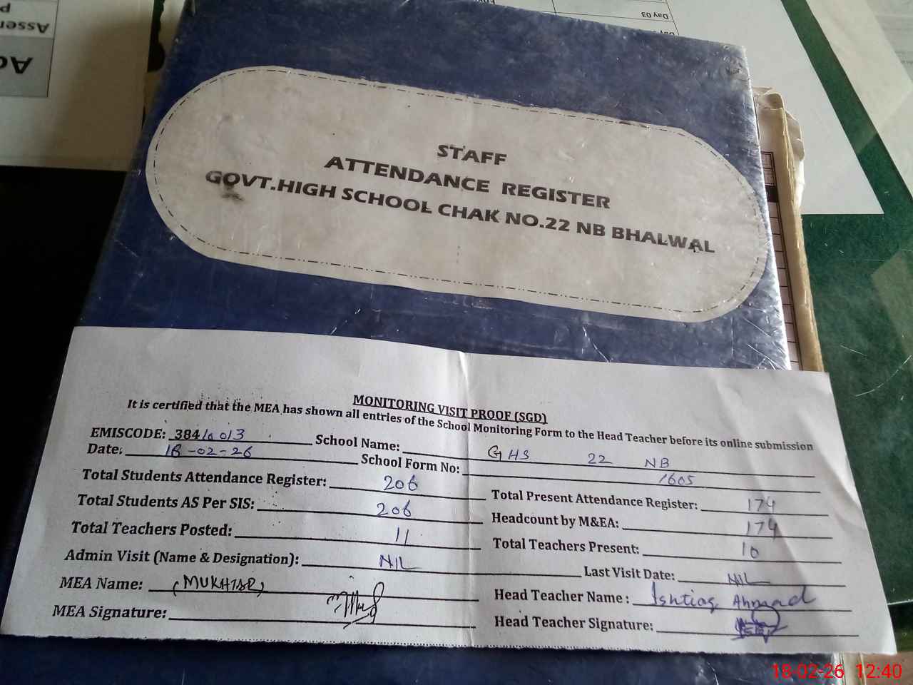 | EMIS Code: 38410013 | Name of School: GHS CHAK NO.22 NB | |||