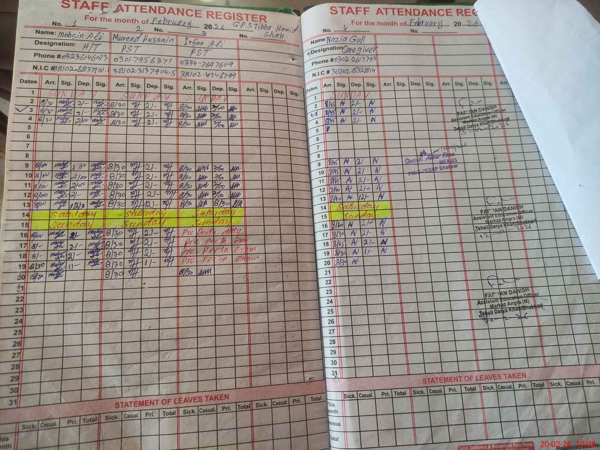 | Name: Mo**** Al**** Designation: (School Headmaster's/Headmistress's) PST Phone/Cell Number: 03**** |
