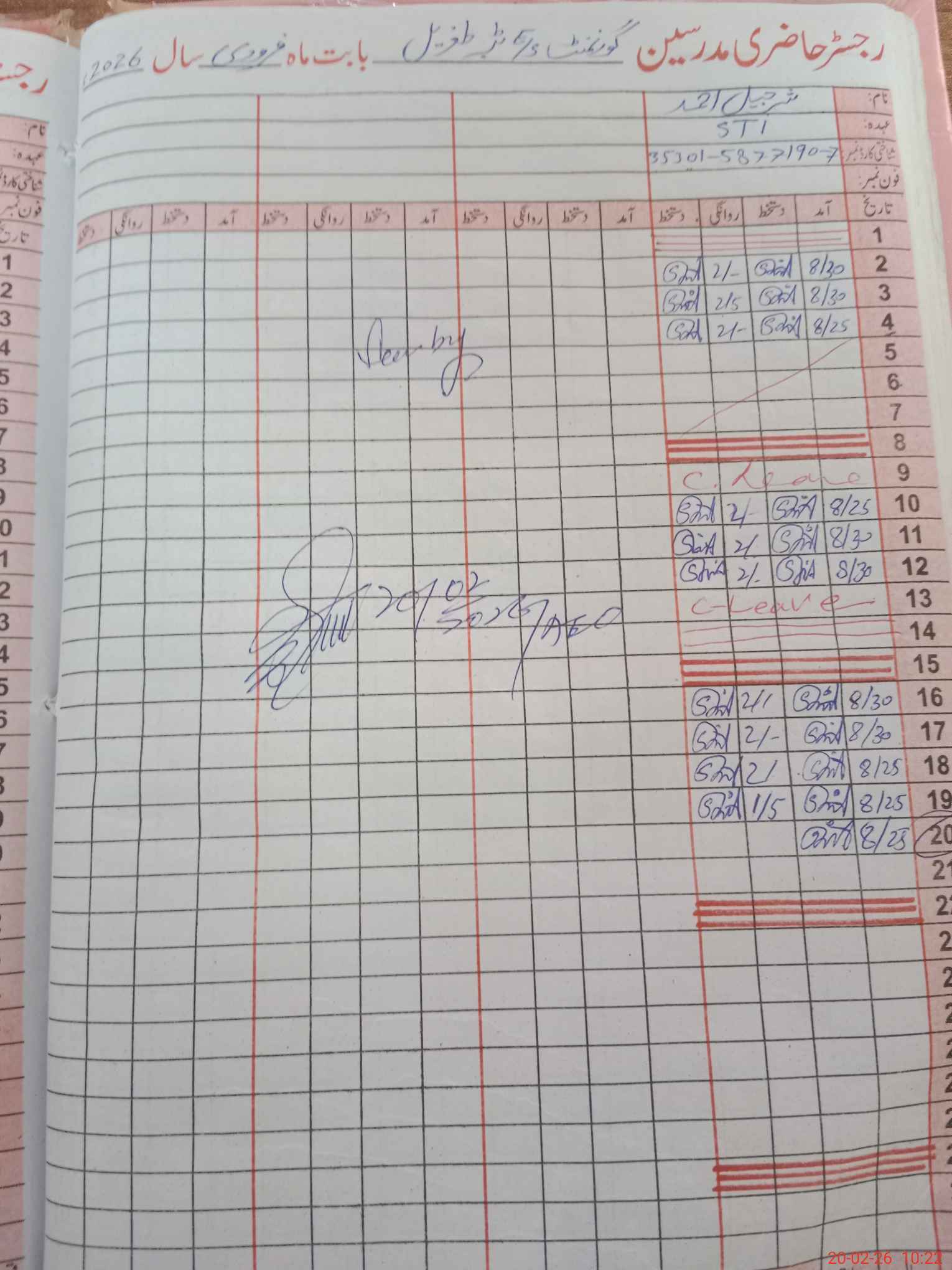 | CNIC | Full Name | Designation | R/C | Absence During Last Calender Month |