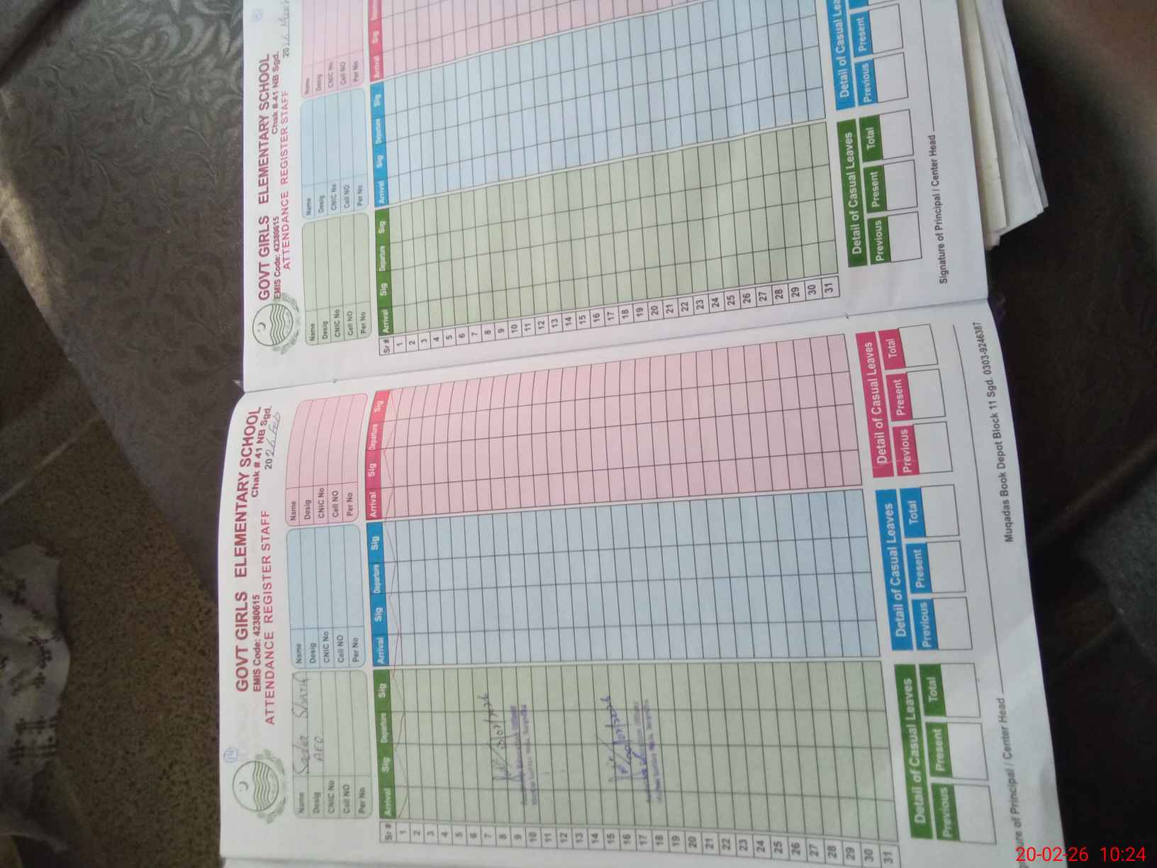 | Name: AB**** AL**** Designation: (School Headmaster's/Headmistress's) S.S.T.(Arts) Phone/Cell Number: 03**** |