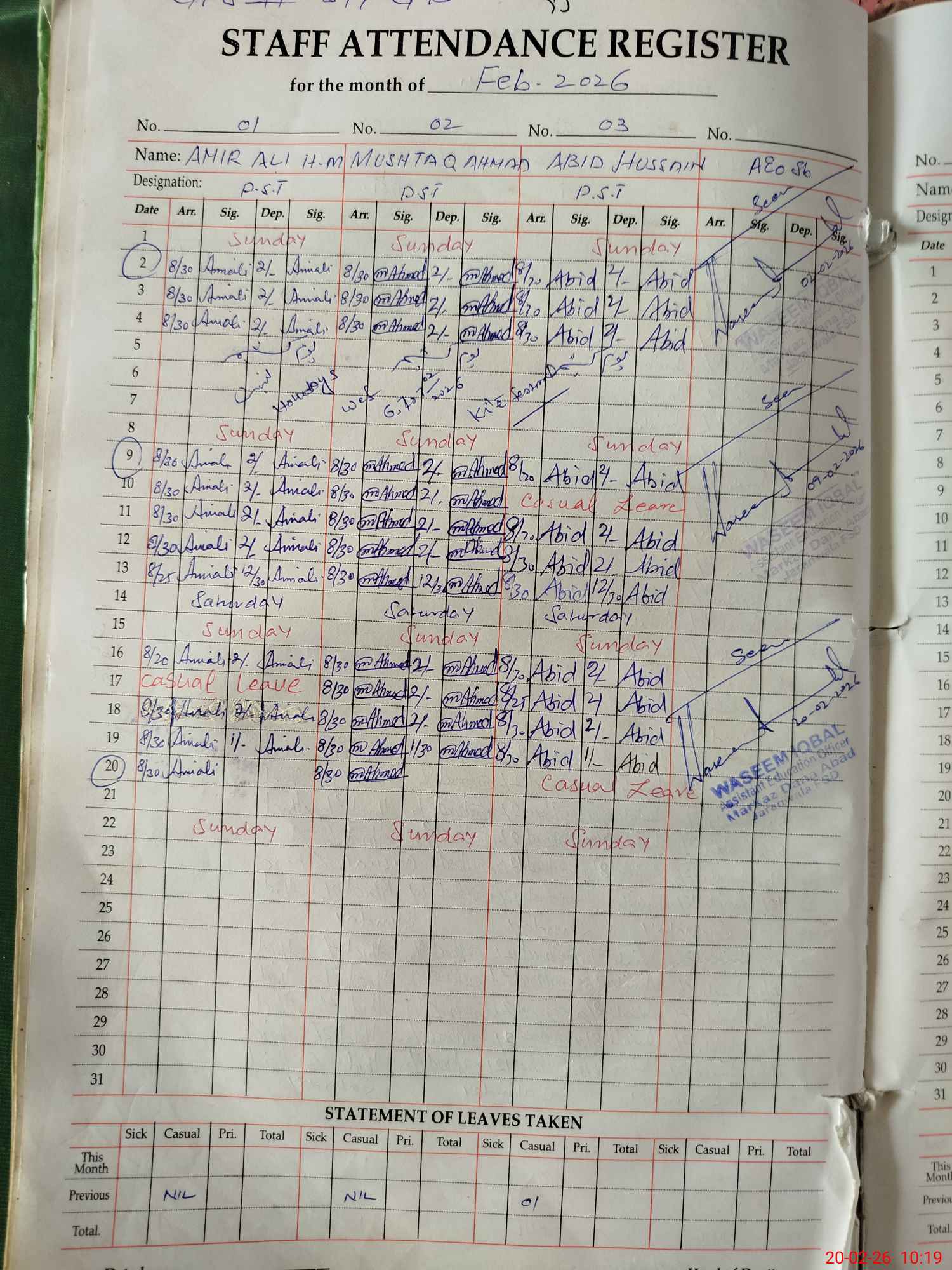 | 33**** | Ab**** Hu**** | PST Science/Maths | Regular | 0 | 0 | 0 | 0 | 0 | 0 | 0 | 0 | 0 | Casual |