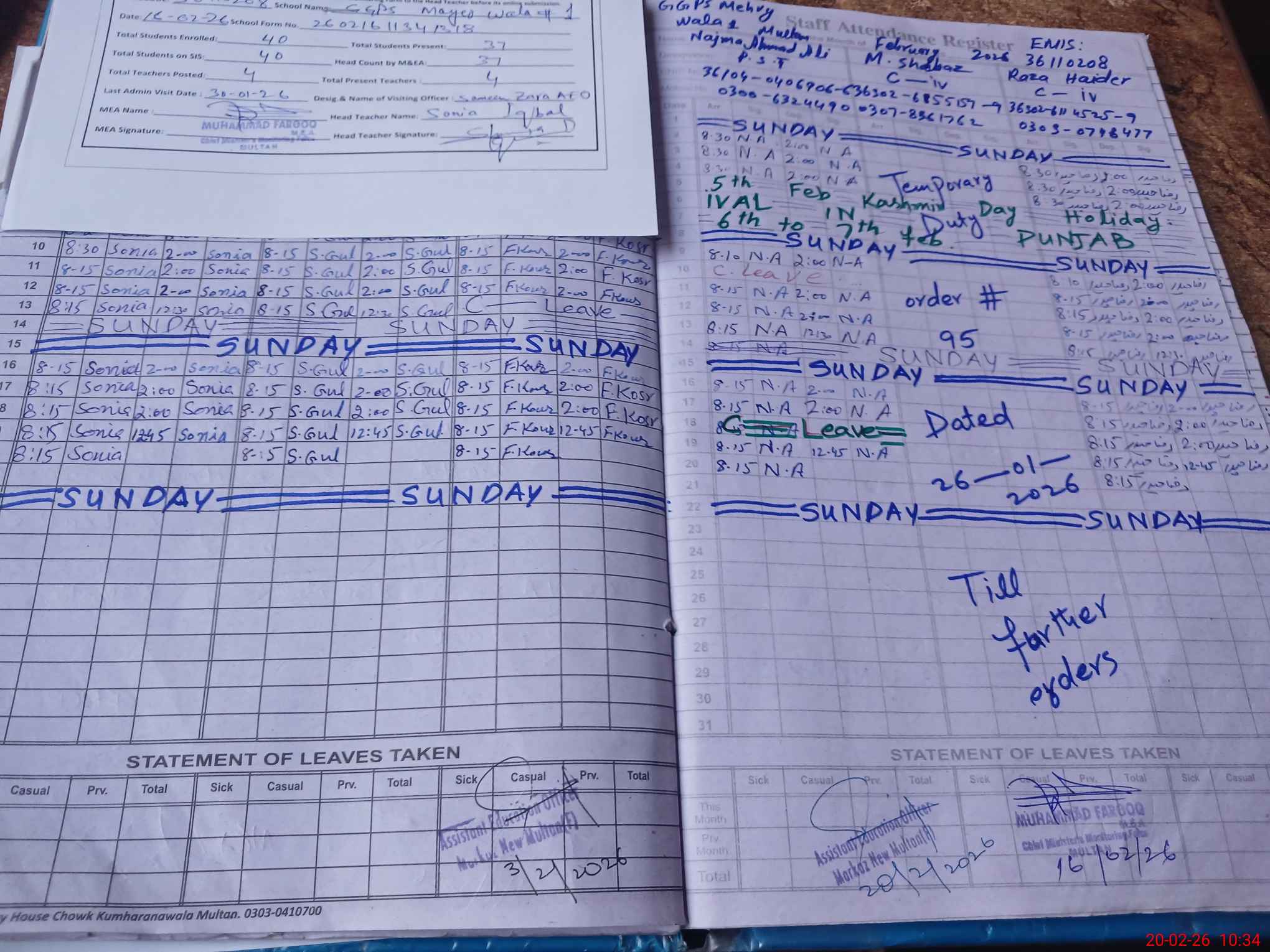 | Monitoring Date: 20-02-2026 | Start Time: 20-02-2026 10:16 AM | End Time: 20-02-2026 10:35 AM | Name of MEA: Sa**** Za**** | |