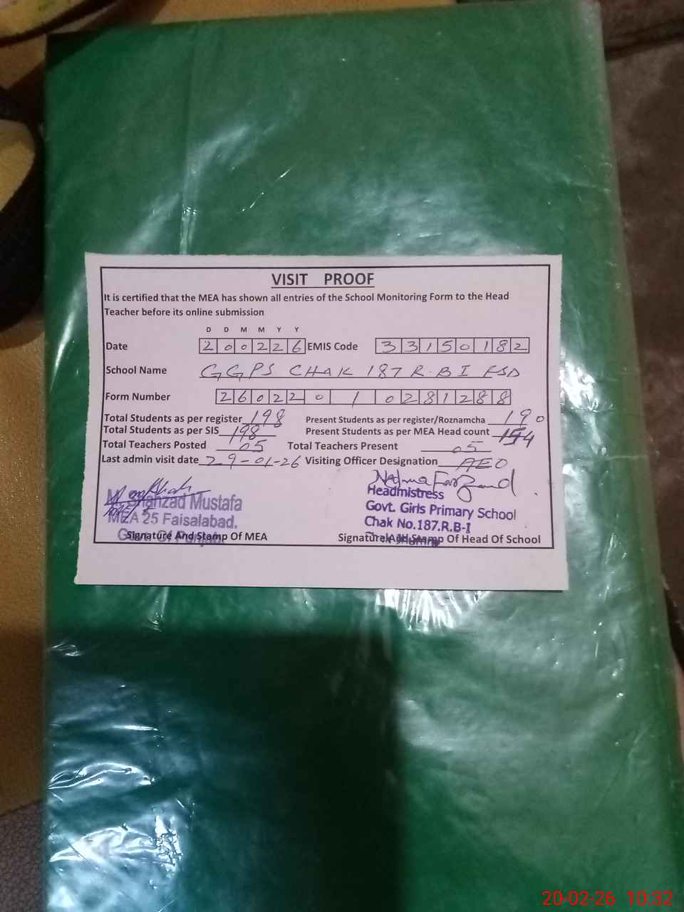 | EMIS Code: 33150182 | Name of School: GGPS CHAK NO 187 RB 1 | |||