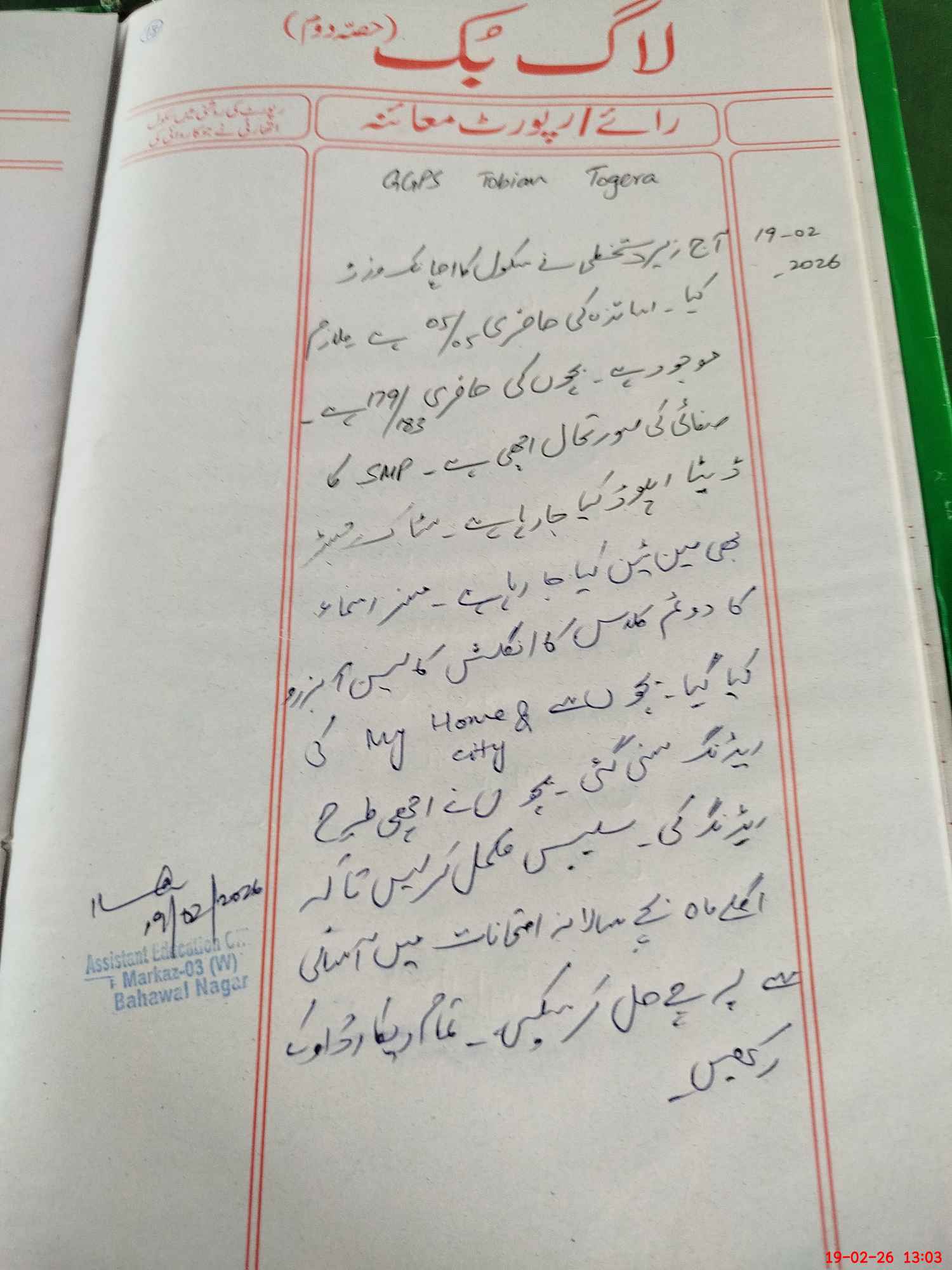 | Certified that this School was Inspected by the Undersigned MEA/DMO Today and the Information Stated Above is as Per Record. | |||||