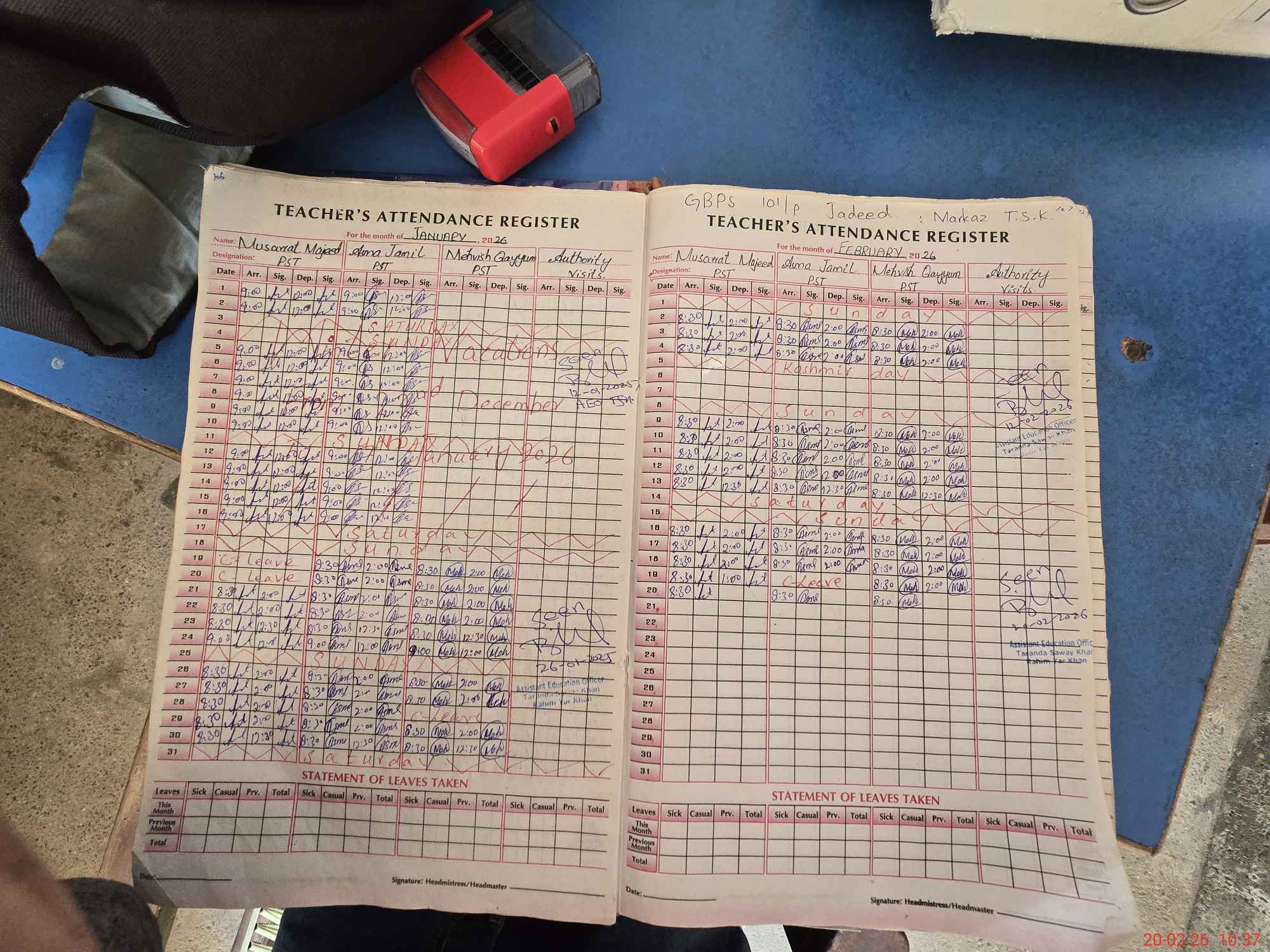 | Attendance Register | Head Teacher | MEA with School | Visit Proof |