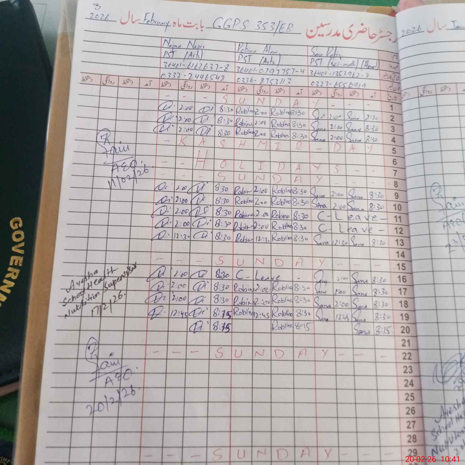 | Name: SA**** RA**** Designation: (School Headmaster's/Headmistress's) PST Phone/Cell Number: 03**** |