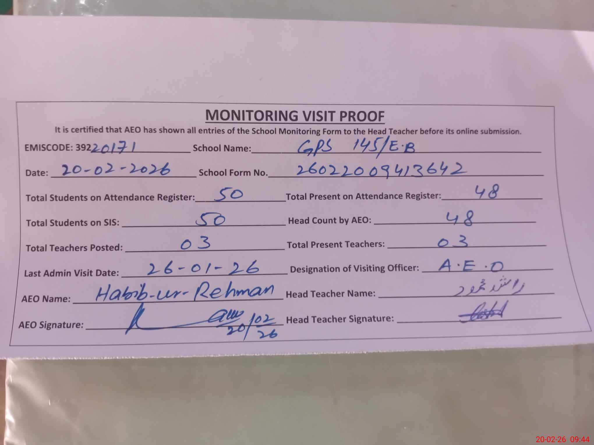 | Monitoring Date: 20-02-2026 | Start Time: 20-02-2026 09:35 AM | End Time: 20-02-2026 09:44 AM | Name of MEA: Ha**** urRe**** | |