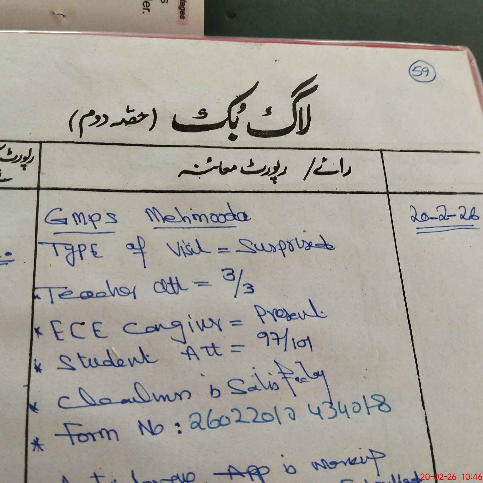 | Attendance Register | Head Teacher | MEA with School | Visit Proof |