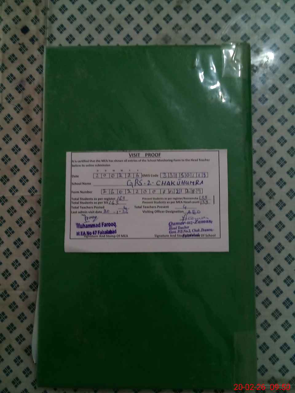 | EMIS Code: 33150113 | Name of School: GPS NO. 2 CHAK JHUMRA | |||