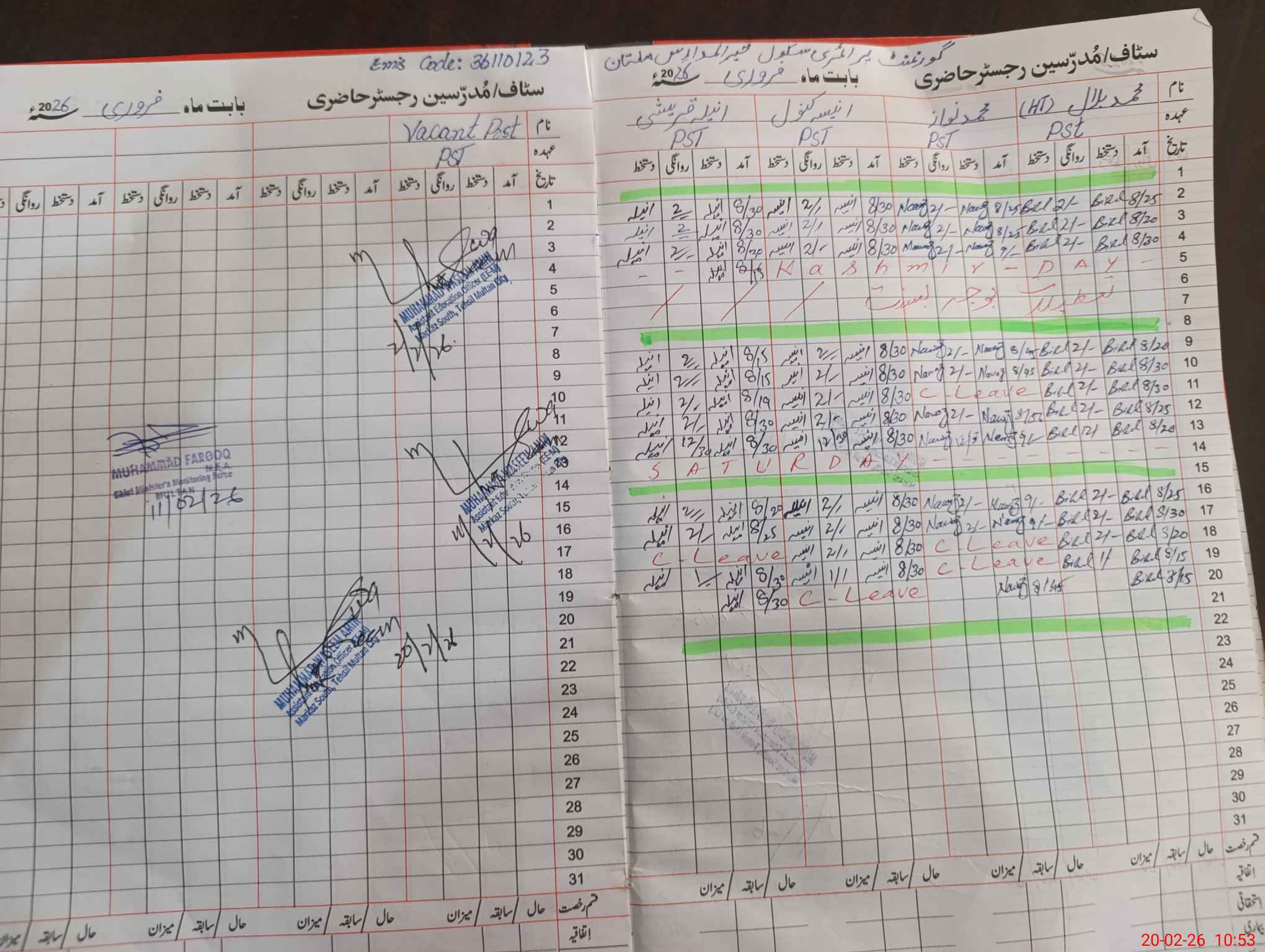 | EMIS Code: 36110123 | Name of School: GPS KHAIR-UL-MADARIS AURANGZEB ROAD MOHALLA GAOWSHALA | |||