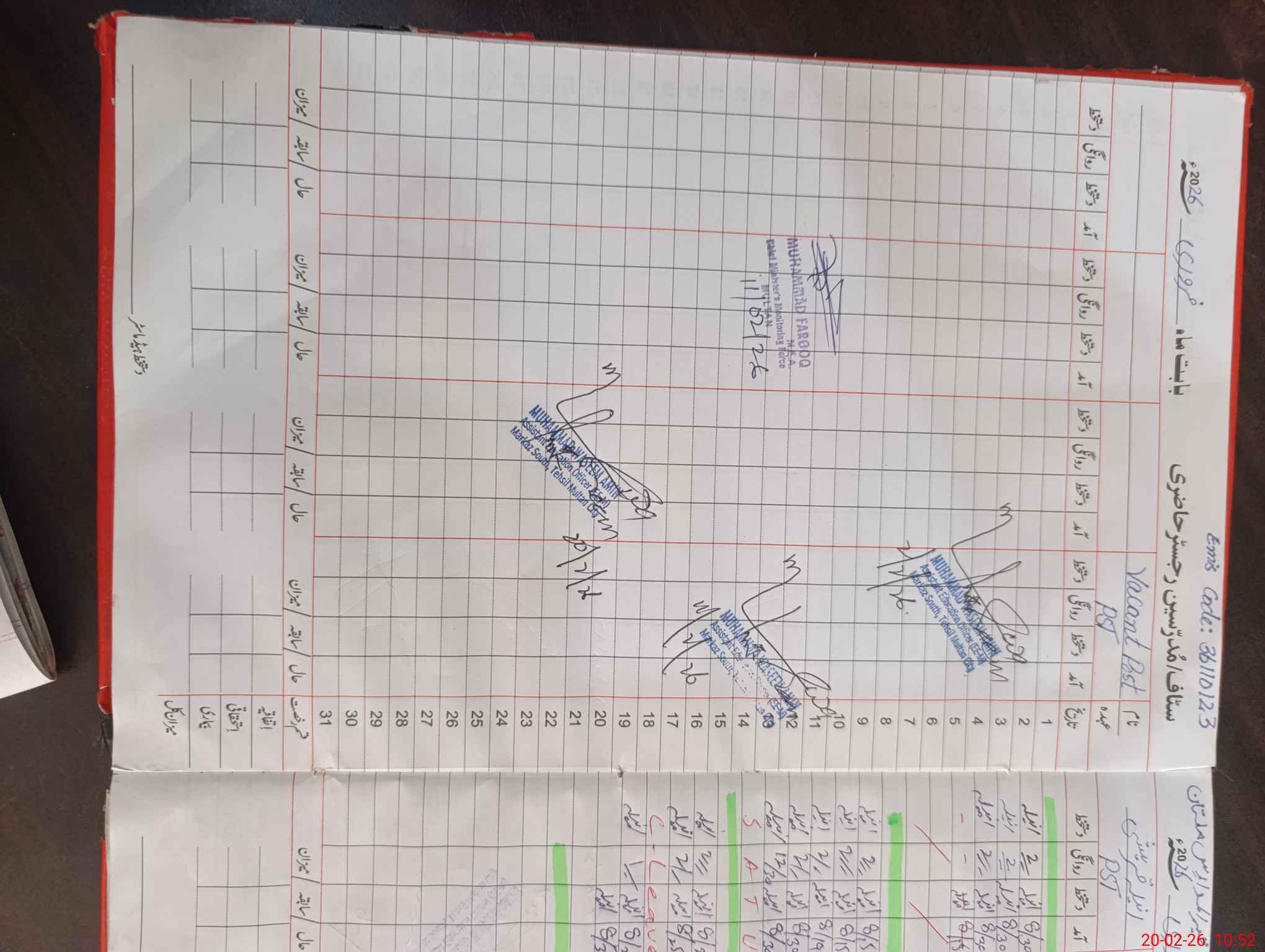 | CNIC | Full Name | Designation | R/C | Absence during last cal. month |