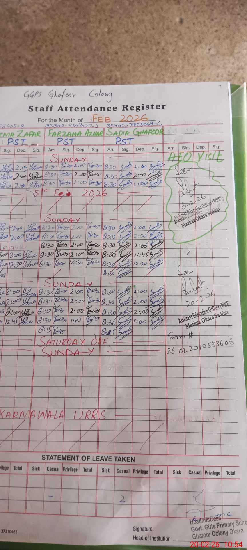 | EMIS Code: 39320654 | Name of School: GGPS GHAFOOR COLONY OKARA | |||