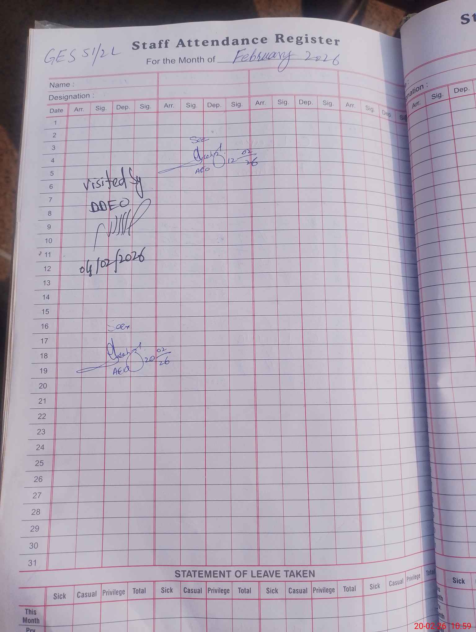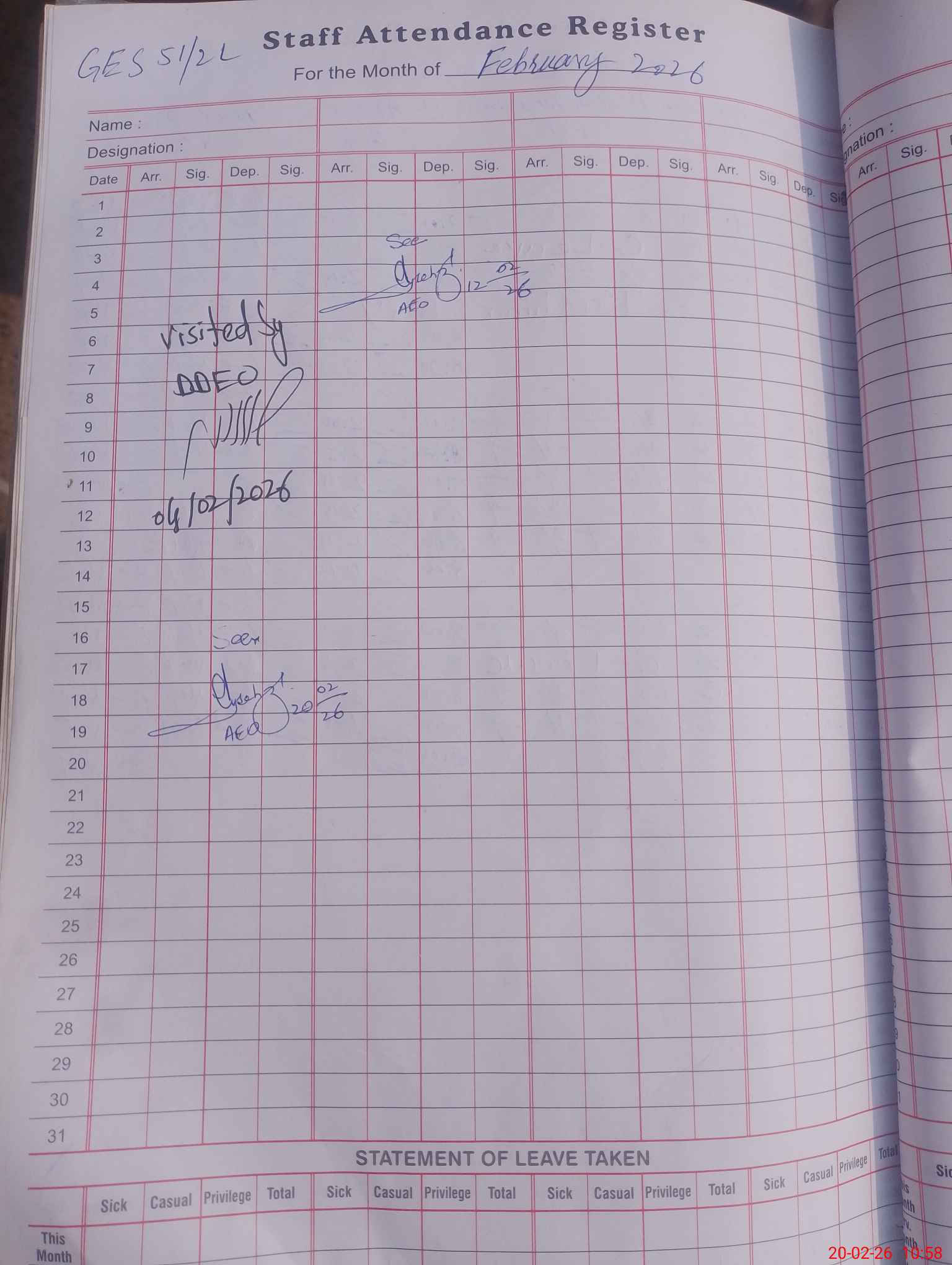 | Sr.No. | Visit Date | Designation | ||