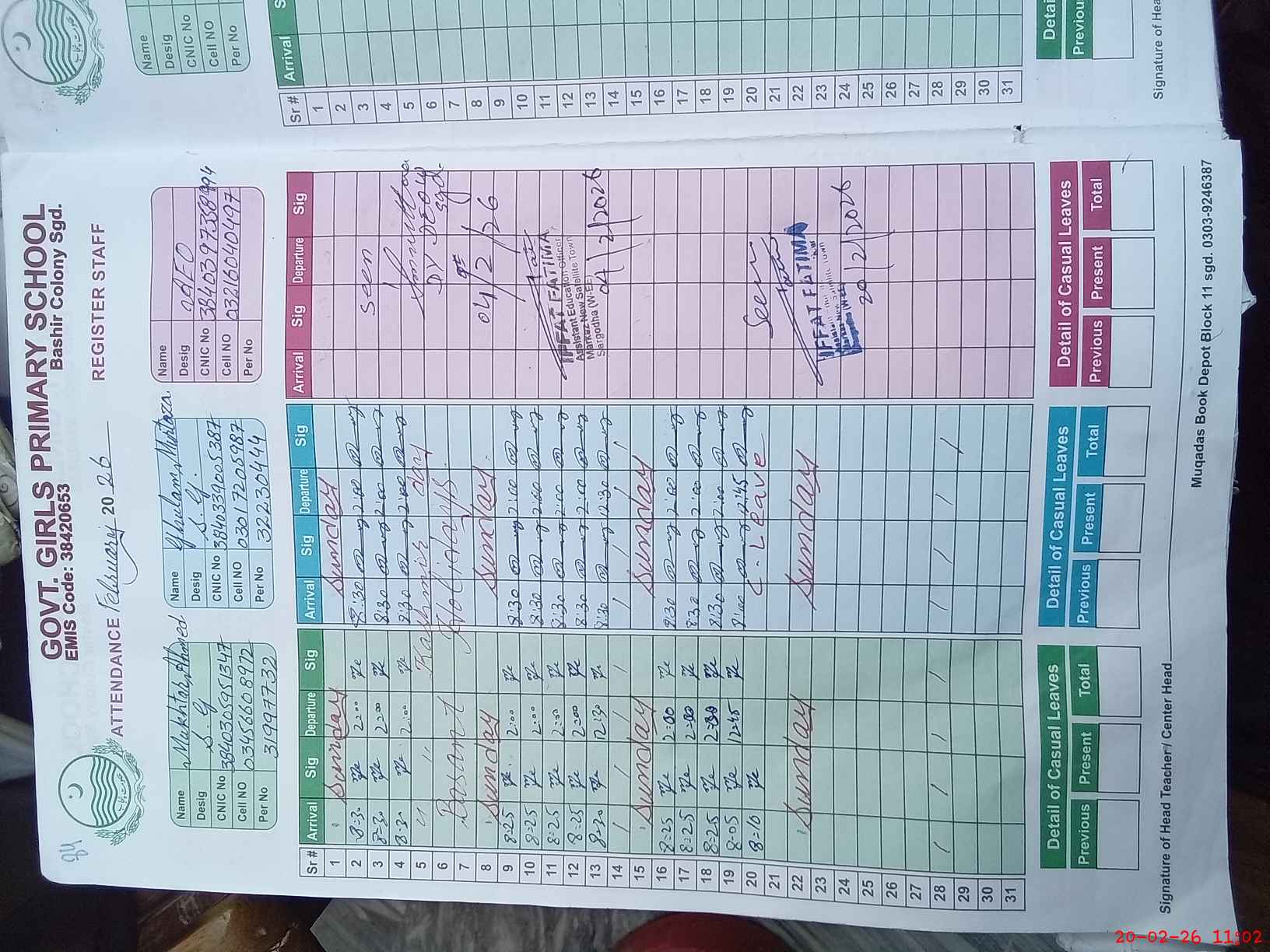 | Name: BU**** QA**** Designation: (School Headmaster's/Headmistress's) PST Phone/Cell Number: 03**** |