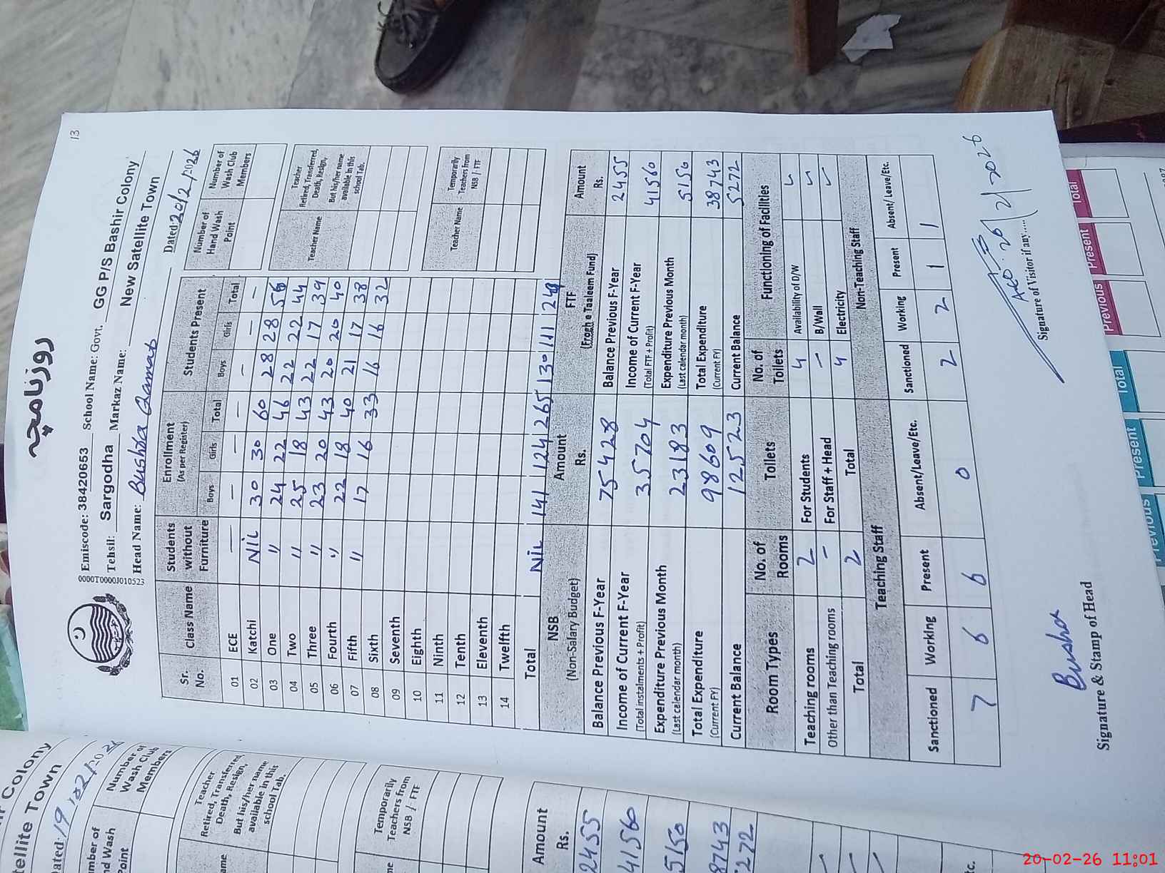 | EMIS Code: 38420653 | Name of School: GGPS BASHIR COLONY SARGODHA | |||