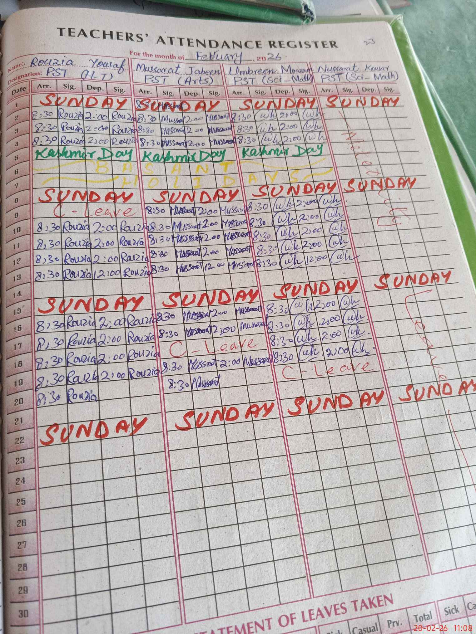 | Leave | Duty | Absent | Maternity | Medical | Ex- Pak |