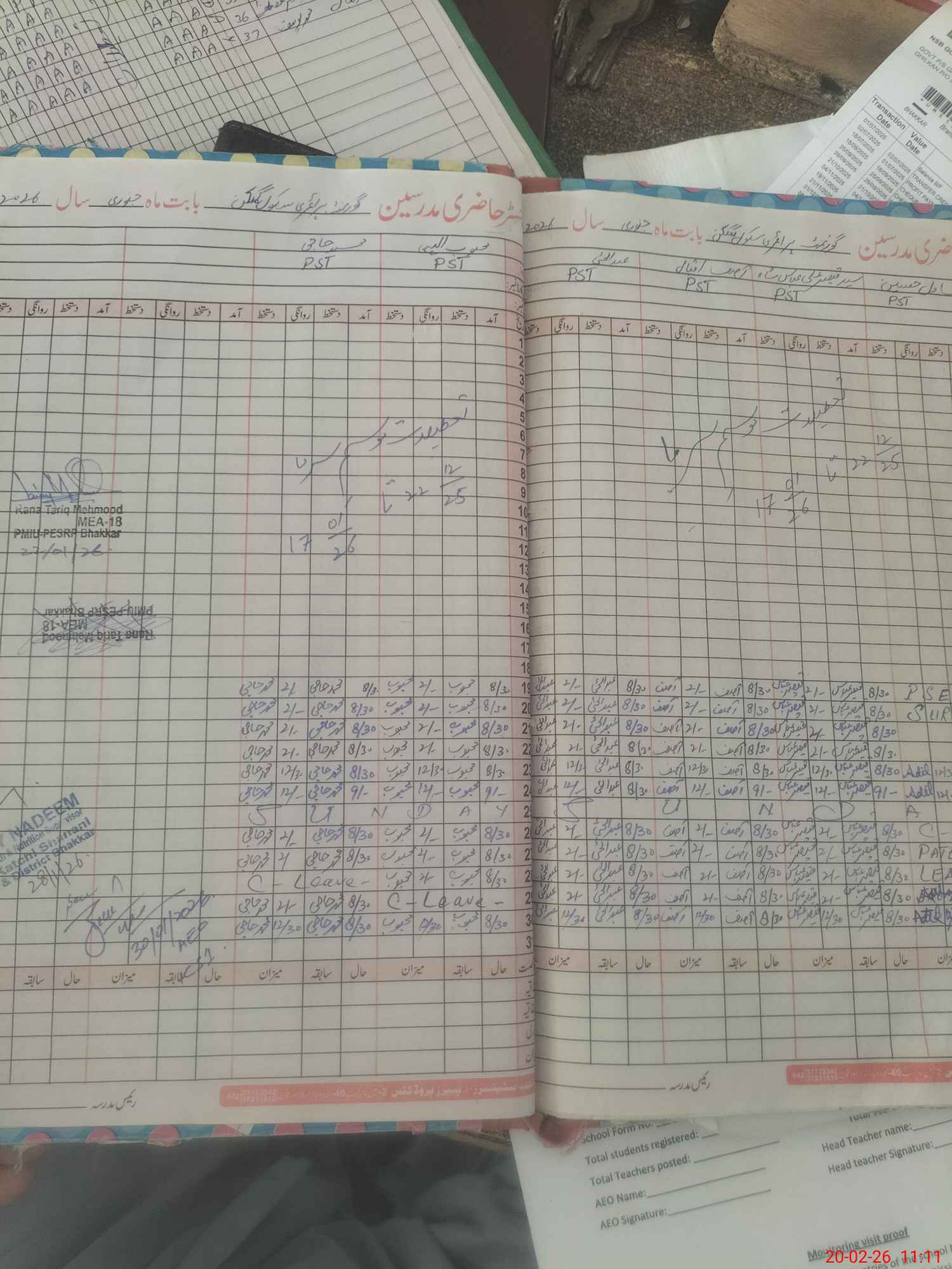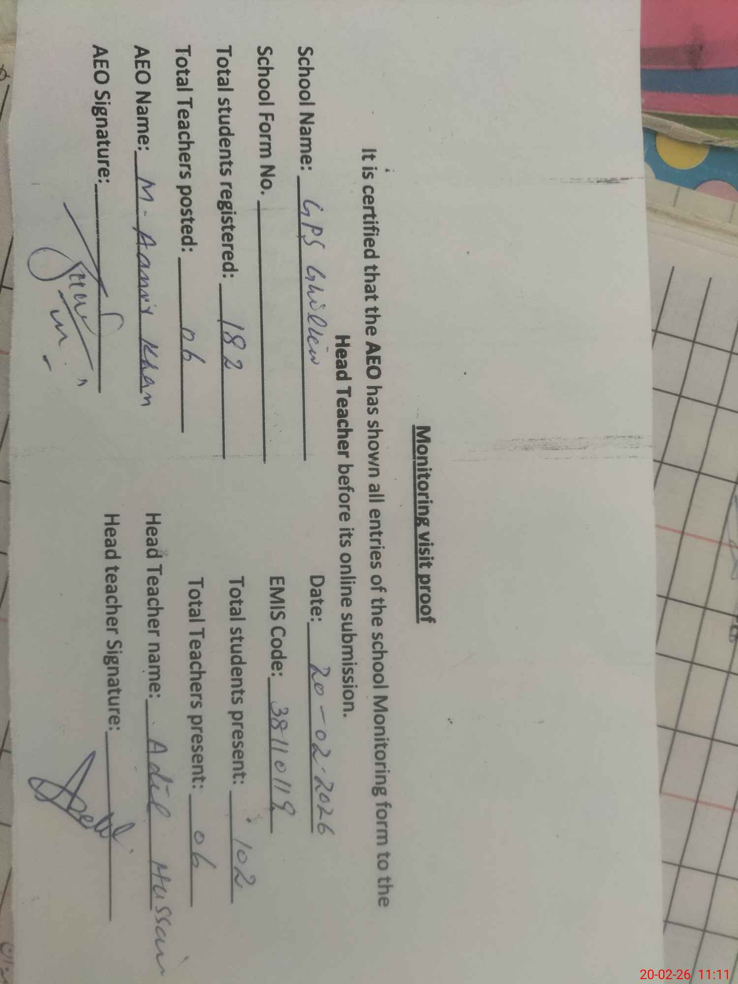 | Attendance Register | Head Teacher | MEA with School | Visit Proof |