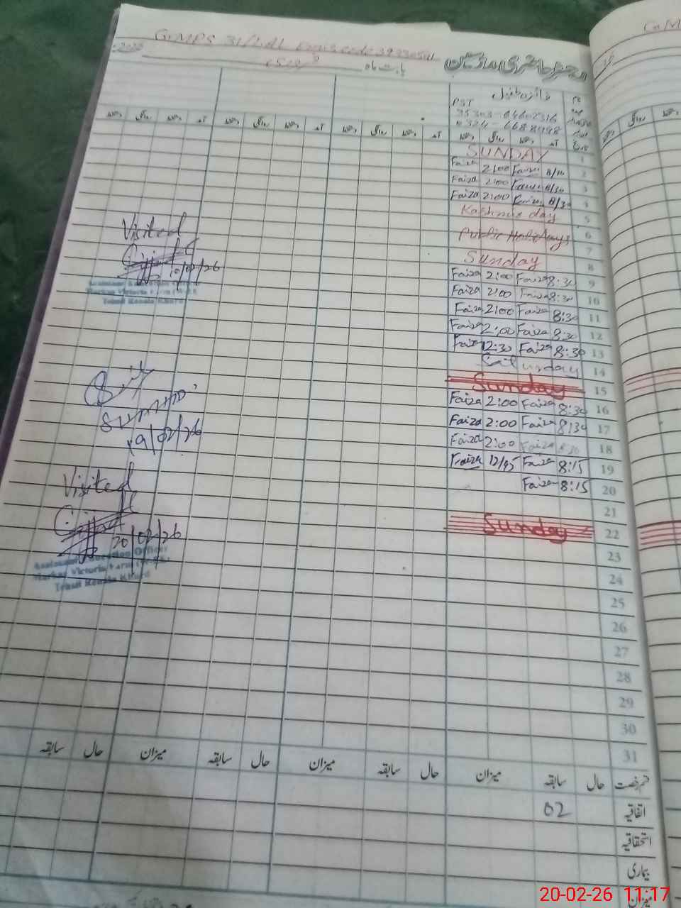 | CNIC | Full Name | Designation | R/C | Absence During Last Calender Month |