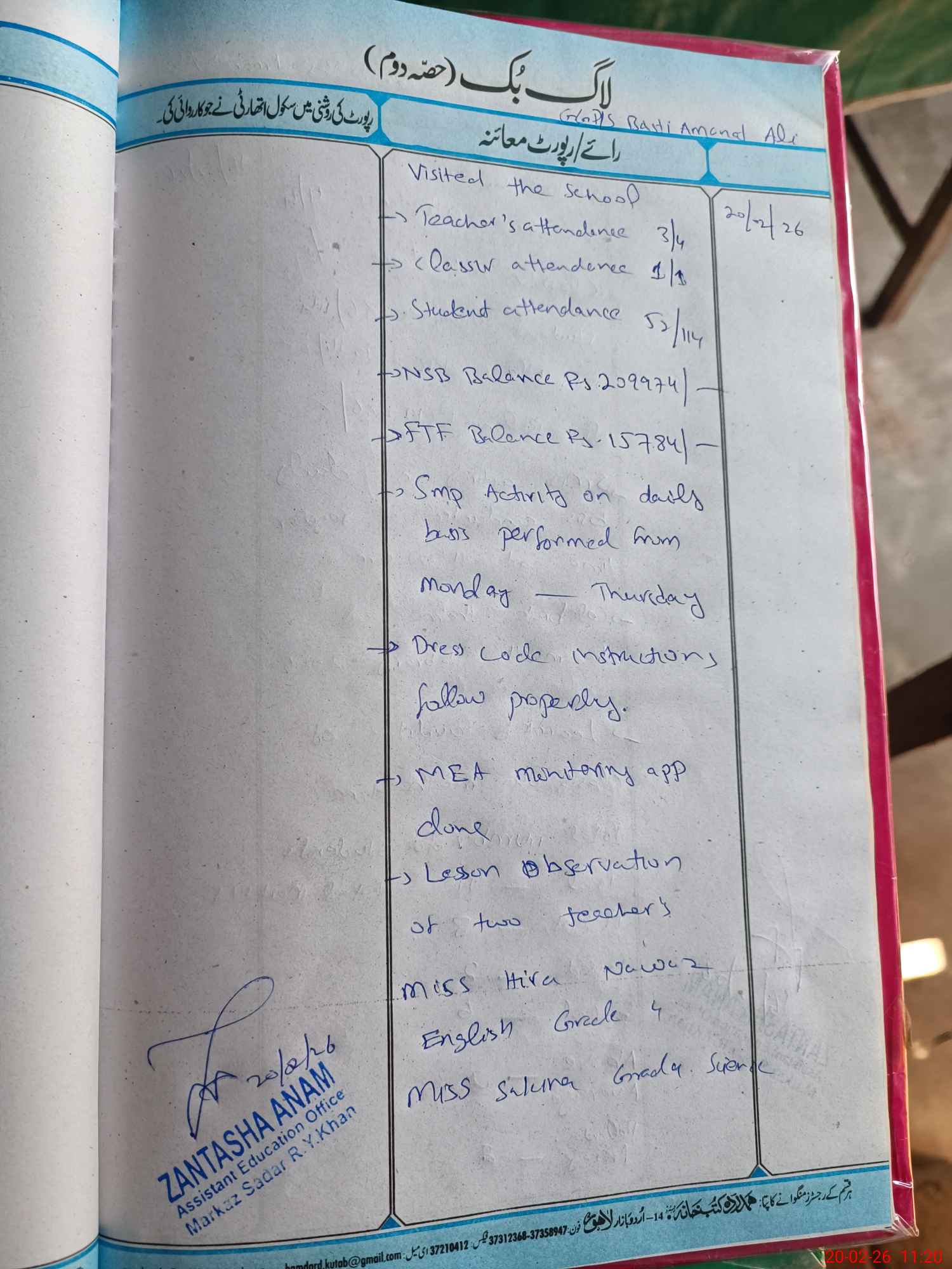 | Monitoring Date: 20-02-2026 | Start Time: 20-02-2026 10:56 AM | End Time: 20-02-2026 11:21 AM | Name of MEA: Za**** An**** | |