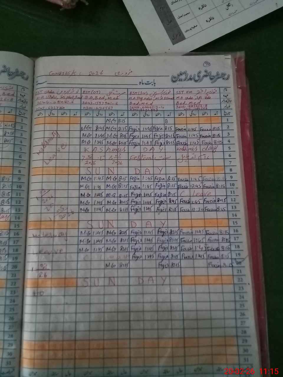 | 36**** | Ko**** Pa**** | EST Urdu | Regular | 0 | 0 | 0 | 0 | 0 | 0 | 0 | 0 | 0 | Maternity |
