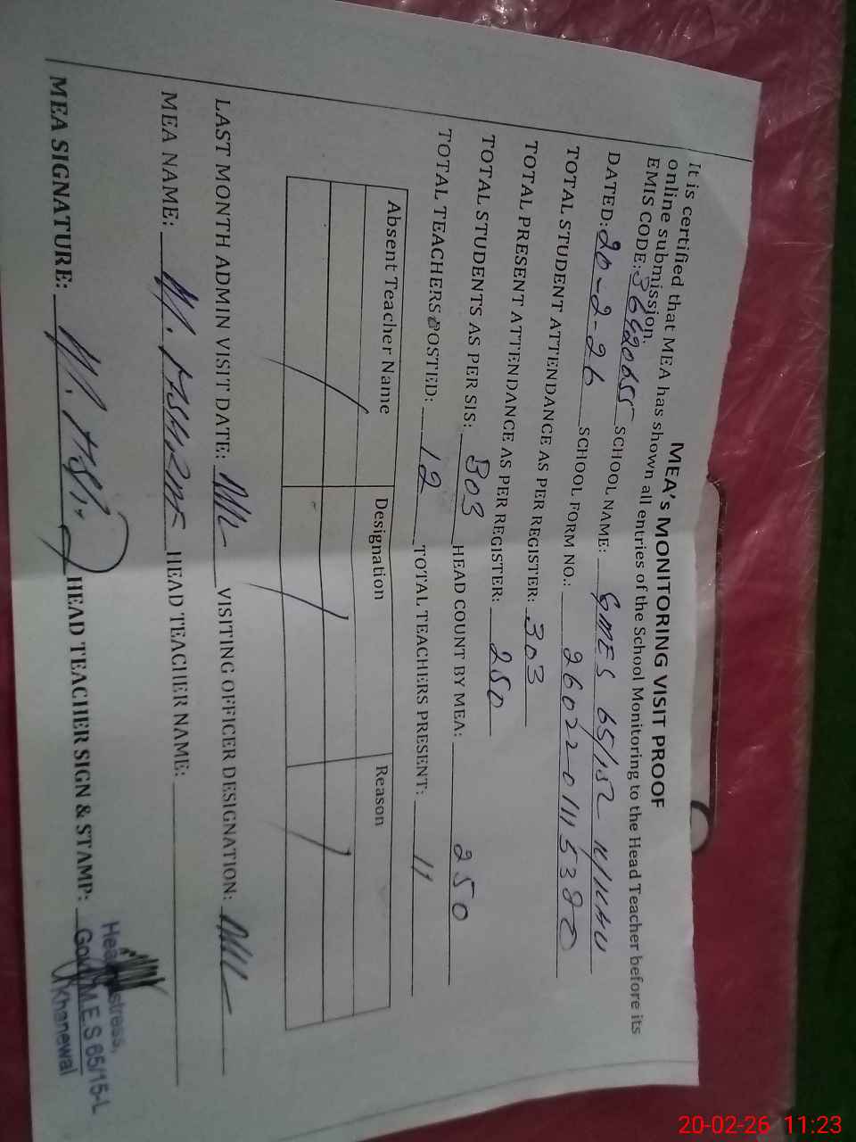 | EMIS Code: 36420655 | Name of School: GMES 65/15-L, KACHA KHUH | |||