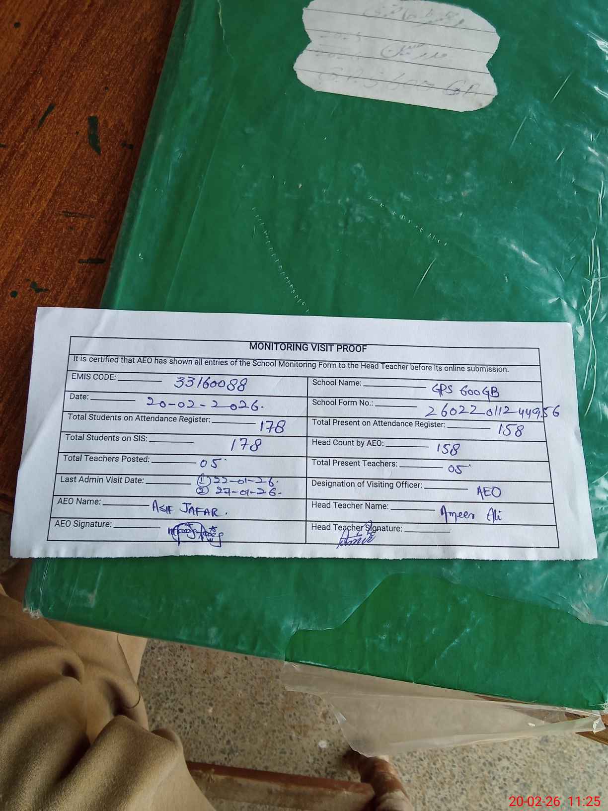 | EMIS Code: 33160088 | Name of School: GPS 600 GB | |||