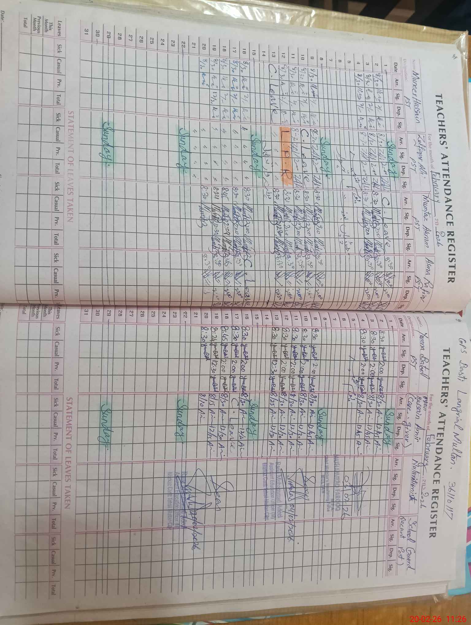 | Leave | Duty | Absent | Maternity | Medical | Ex- Pak |