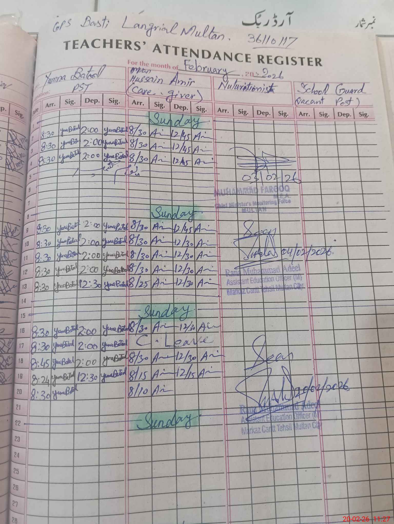 | EMIS Code: 36110117 | Name of School: GPS BASTI LANGRIAL MULTAN CANTT | |||