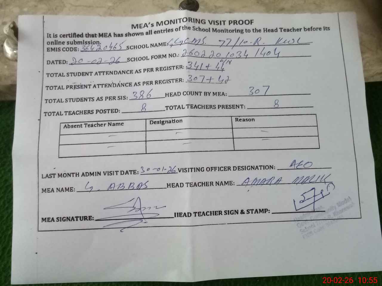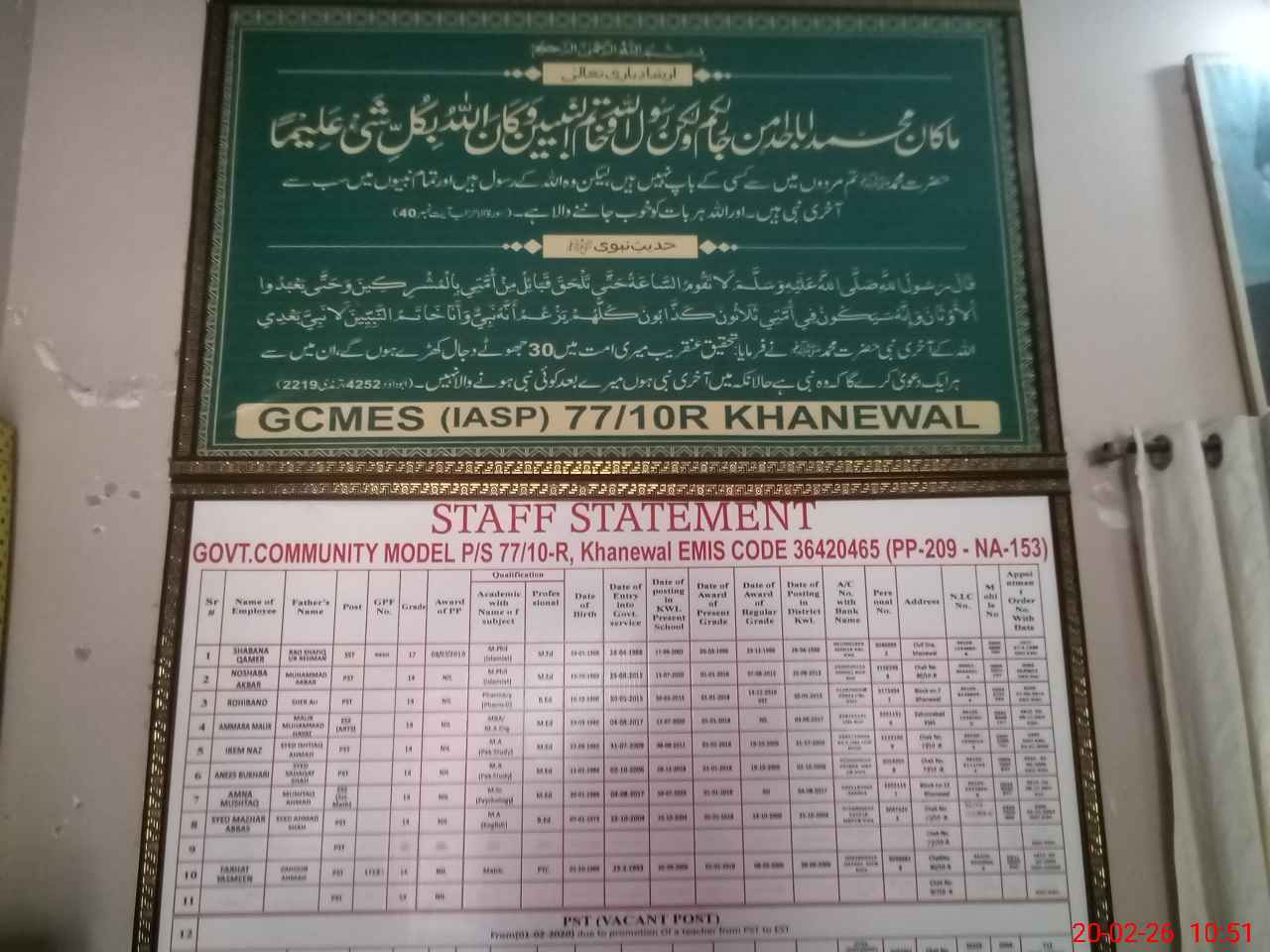 | EMIS Code: 36420465 | Name of School: GCMES 77/10-R KACHA KHUH | |||