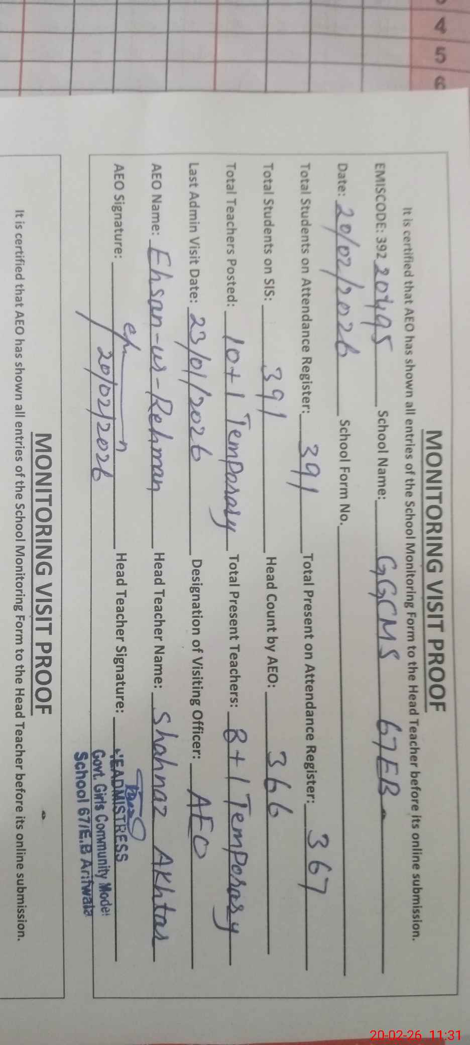 | EMIS Code: 39220495 | Name of School: GGCMS CHAK NO. 67/EB | |||