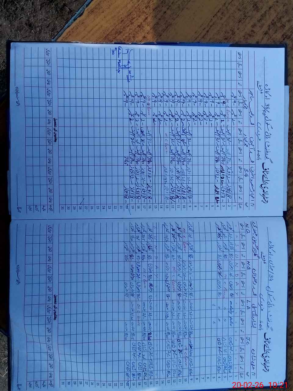 | CNIC | Full Name | Designation | R/C | Absence During Last Calender Month |