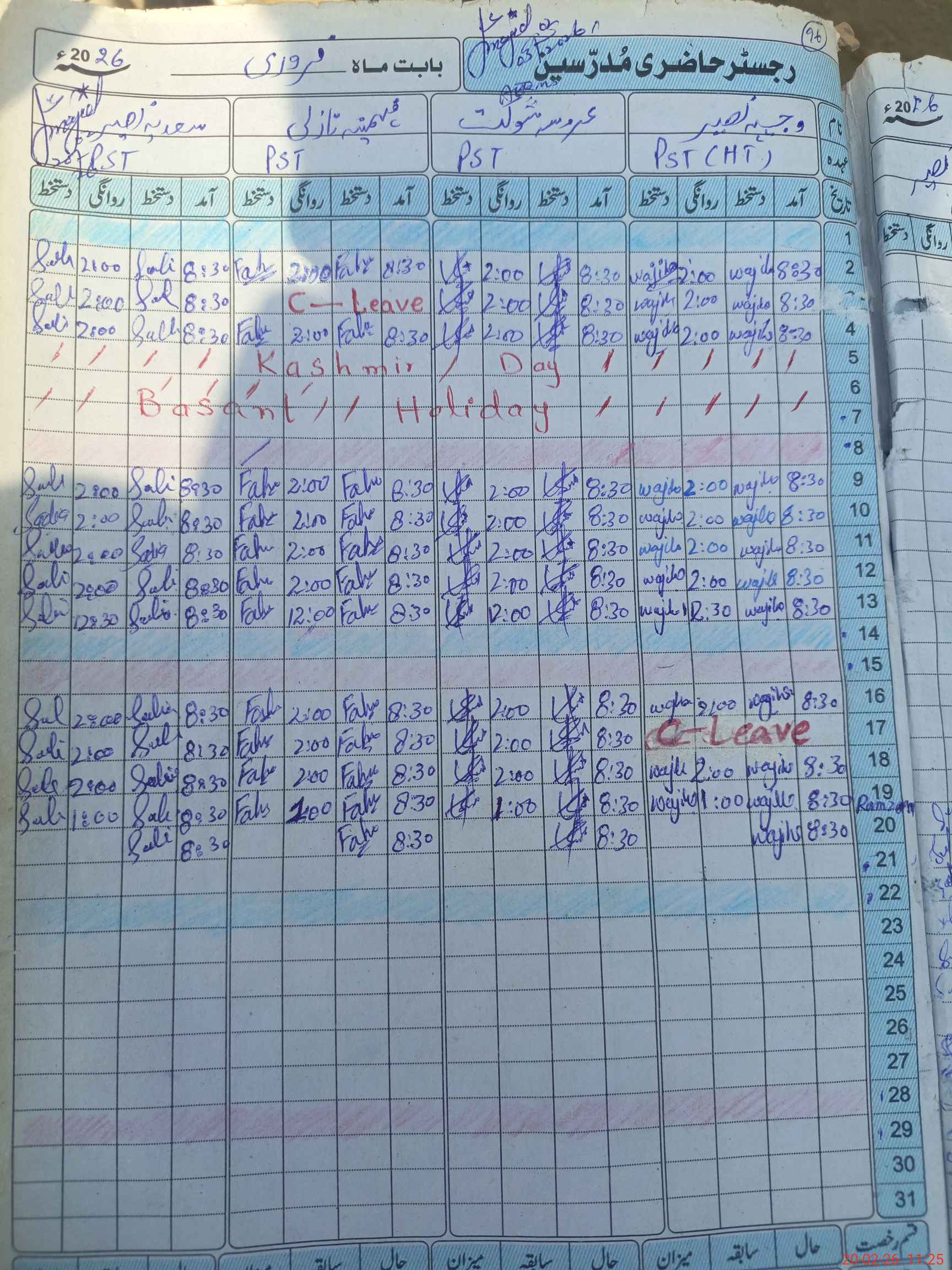 | CNIC | Full Name | Designation | R/C | Absence During Last Calender Month |