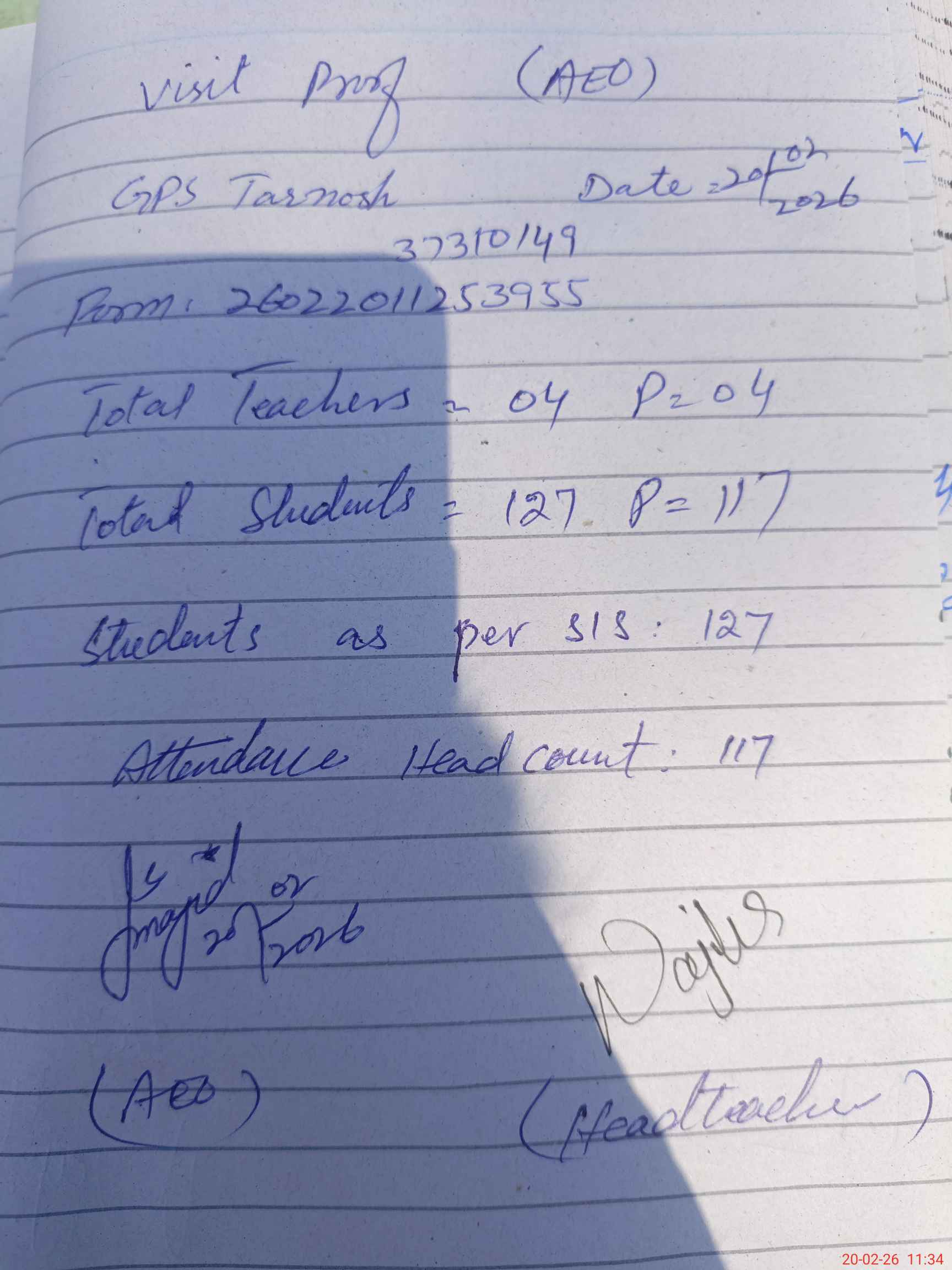 | Attendance Register | Head Teacher | MEA with School | Visit Proof |