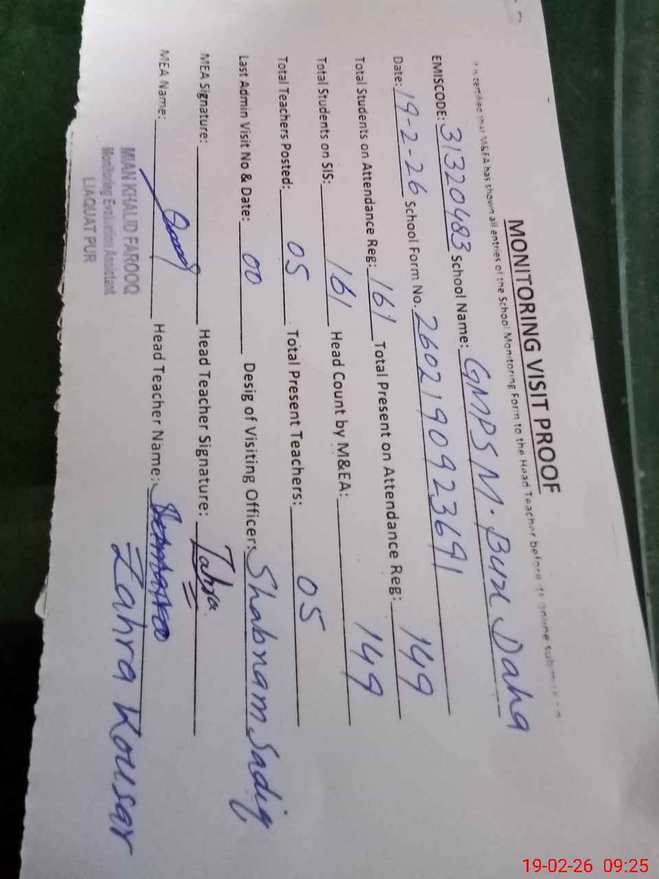 | EMIS Code: 31320483 | Name of School: GMPS MUHAMMAD BUX DAHA | |||
