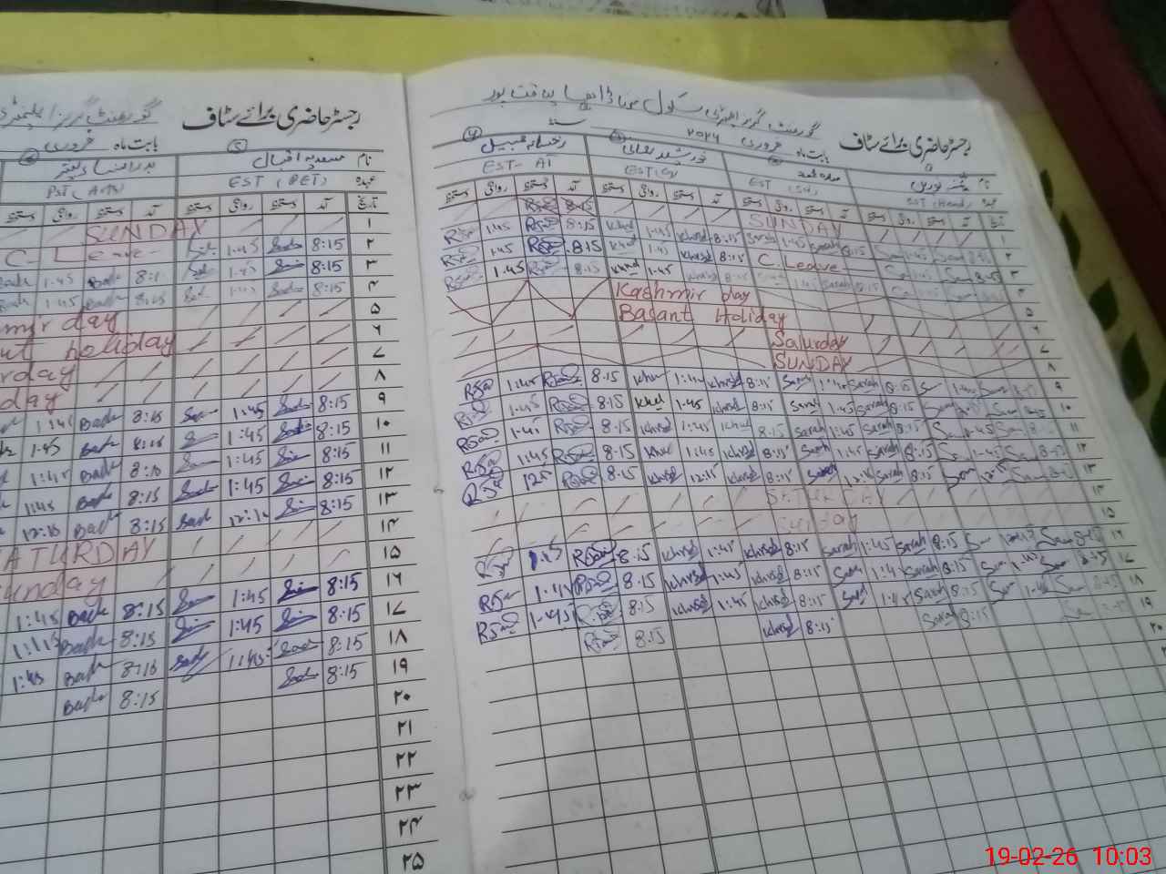 | Leave | Duty | Absent | Maternity | Medical | Ex- Pak |