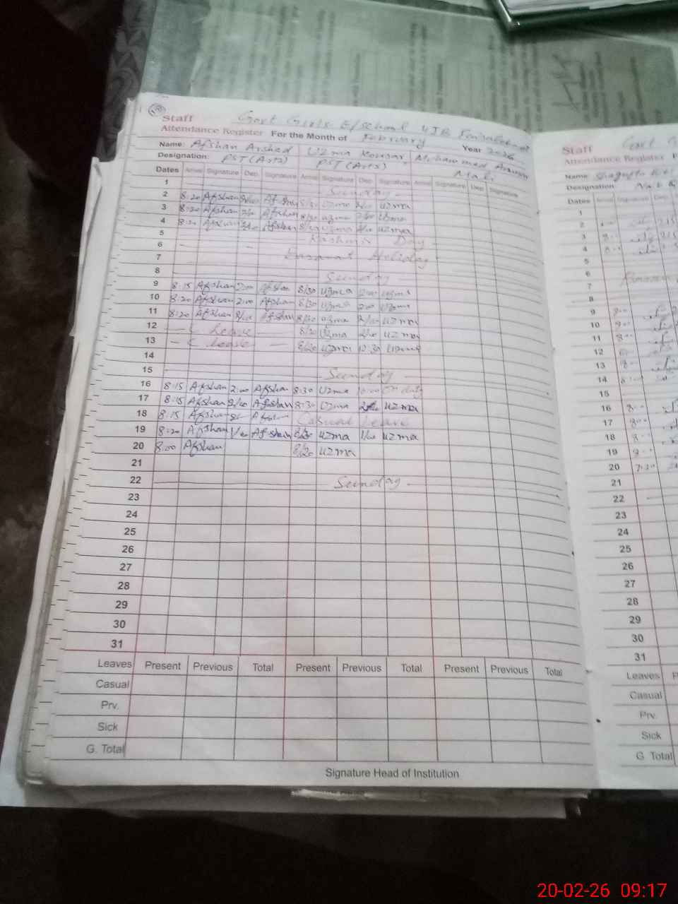 | Leave | Duty | Absent | Maternity | Medical | Ex- Pak |