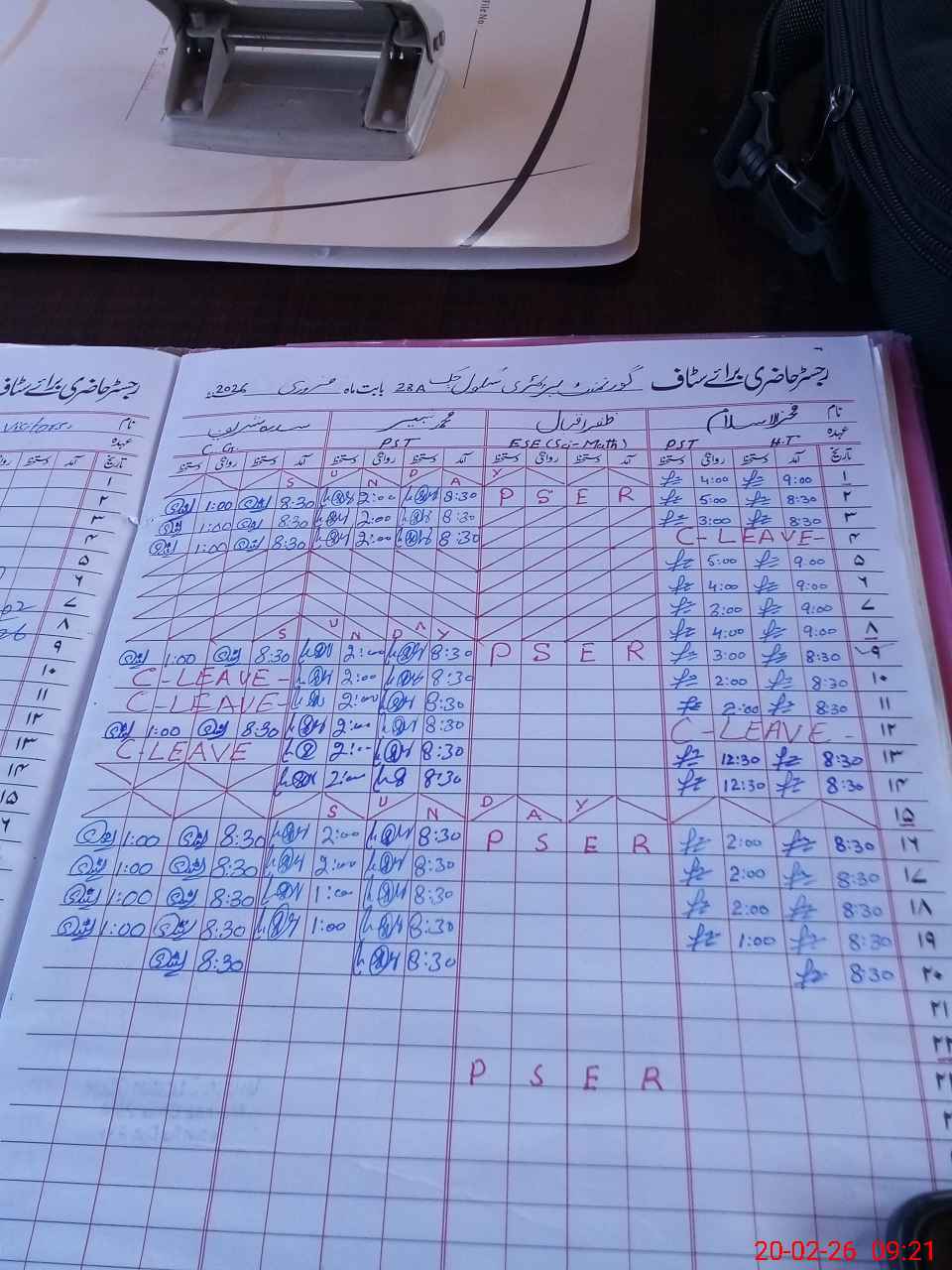 | CNIC | Full Name | Designation | R/C | Absence During Last Calender Month |