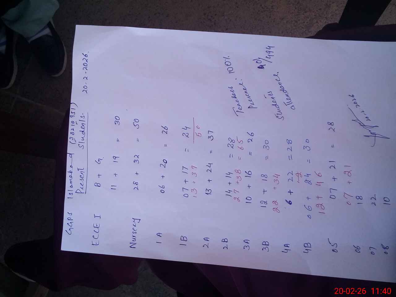 | No. of Students Present - Male | 0 | 11 | 13 | 27 | 22 | 12 | 7 | 120 | ||||||||