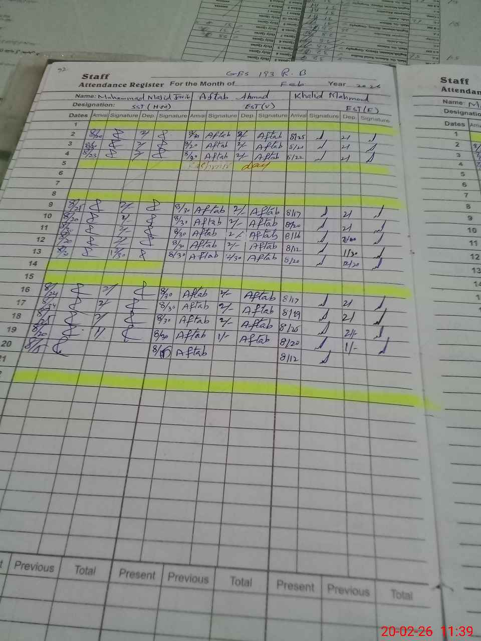 | CNIC | Full Name | Designation | R/C | Absence During Last Calender Month |