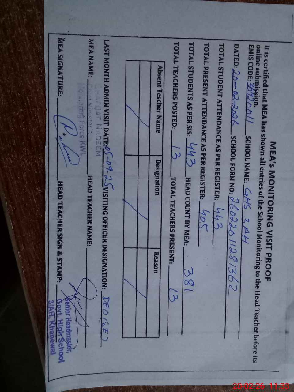 | EMIS Code: 36420011 | Name of School: GHS 3/AH, KHANEWAL | |||